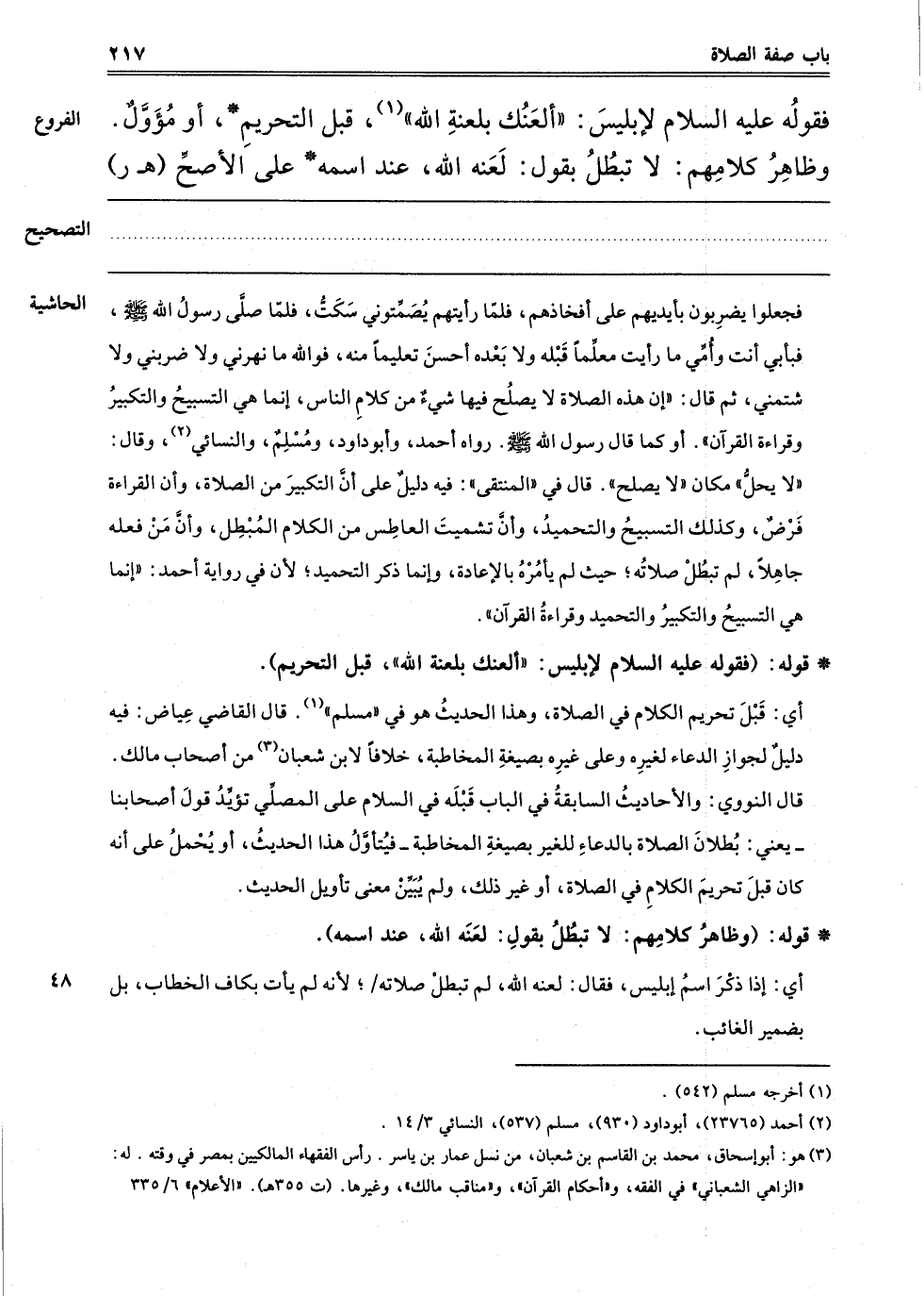 فَقَوْلُهُ عَلَيْهِ السَّلَامُ لِإِبْلِيسِ "أَلْعَنُكَ بِلَعْنَةِ اللَّهِ" 1 قَبْلَ التَّحْرِيمِ، أَوْ مُؤَوَّلٌ, وَظَاهِرُ كَلَامِهِمْ لَا تَبْطُلُ بِقَوْلِ: لَعَنَهُ اللَّهُ, عِنْدَ اسْمِهِ عَلَى الأصح "هـ ر".