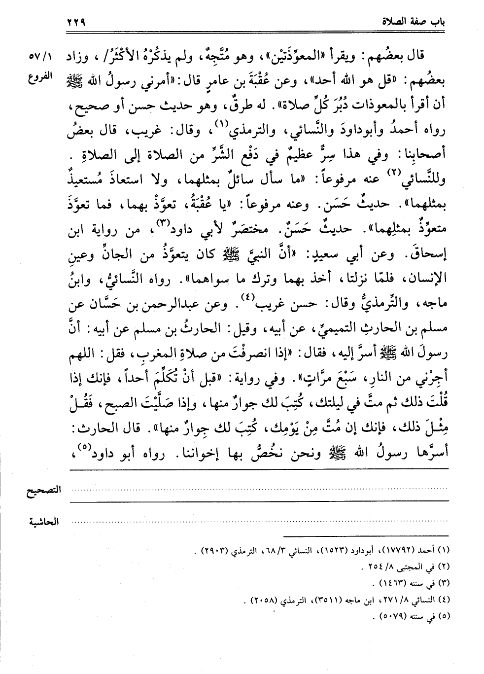 قَالَ بَعْضُهُمْ: وَيَقْرَأُ الْمُعَوِّذَتَيْنِ، وَهُوَ مُتَّجَهٌ، وَلَمْ يَذْكُرْهُ الْأَكْثَرُ، وَزَادَ بَعْضُهُمْ: {قُلْ هُوَ اللَّهُ أَحَدٌ} وَعَنْ عُقْبَةَ بْنِ عَامِرٍ قَالَ: أَمَرَنِي رَسُولُ اللَّهِ صَلَّى اللَّهُ عَلَيْهِ وَسَلَّمَ أَنْ أَقْرَأَ بِالْمُعَوِّذَاتِ دُبُرَ كُلِّ صَلَاةٍ. لَهُ طُرُقٌ، وَهُوَ حَدِيثٌ حَسَنٌ وَصَحِيحٌ، رَوَاهُ أَحْمَدُ وَأَبُو دَاوُد وَالنَّسَائِيُّ وَالتِّرْمِذِيُّ1، وَقَالَ غَرِيبٌ، قَالَ بَعْضُ أَصْحَابِنَا وَفِي هَذَا سِرٌّ عَظِيمٌ فِي دَفْعِ الشَّرِّ مِنْ الصَّلَاةِ إلَى الصَّلَاةِ وَلِلنَّسَائِيِّ2 عَنْهُ مَرْفُوعًا: "مَا سَأَلَ سَائِلٌ بِمِثْلِهِمَا وَلَا اسْتَعَاذَ مُسْتَعِيذٌ بِمِثْلِهِمَا" حَدِيثٌ حَسَنٌ وَعَنْهُ مَرْفُوعًا: "يَا عُقْبَةُ تَعَوَّذْ بِهِمَا، فَمَا تَعَوَّذَ مُتَعَوِّذٌ بِمِثْلِهِمَا" حَدِيثٌ حَسَنٌ مُخْتَصَرٌ لِأَبِي دَاوُد3، مِنْ رِوَايَةِ أَبِي إِسْحَاقَ. وَعَنْ أَبِي سَعِيدٍ أَنَّ النَّبِيَّ صَلَّى اللَّهُ عَلَيْهِ وَسَلَّمَ كَانَ يَتَعَوَّذُ مِنْ الْجَانِّ وَعَيْنِ الْإِنْسَانِ، فَلَمَّا نَزَلَتَا أَخَذَ بِهِمَا وَتَرَكَ مَا سِوَاهُمَا. رَوَاهُ النَّسَائِيُّ وَابْنُ مَاجَهْ وَالتِّرْمِذِيُّ وَقَالَ: حَسَنٌ غَرِيبٌ4، وَعَنْ عَبْدِ الرَّحْمَنِ بْنِ حَسَّانَ عَنْ مُسْلِمِ بْنِ الْحَارِثِ التَّمِيمِيِّ عَنْ أَبِيهِ، وَقِيلَ الْحَارِثُ بْنُ مُسْلِمٍ عَنْ أَبِيهِ، أَنَّ رَسُولَ اللَّهِ صَلَّى اللَّهُ عَلَيْهِ وَسَلَّمَ أَسَرَّ إلَيْهِ فَقَالَ: "إذَا انْصَرَفْت مِنْ صَلَاةِ الْمَغْرِبِ فَقُلْ: اللَّهُمَّ أَجِرْنِي مِنْ النَّارِ سَبْعَ مَرَّاتٍ" وَفِي رِوَايَةٍ " قَبْلَ أَنْ تُكَلِّمَ أَحَدًا، فَإِنَّك إذَا قُلْت ذَلِكَ ثُمَّ مِتَّ فِي لَيْلَتِك كُتِبَ لَك جِوَارٌ مِنْهَا، وَإِذَا صَلَّيْت الصُّبْحَ فَقُلْ مِثْلَ ذَلِكَ فَإِنَّك إذَا مِتَّ مِنْ يَوْمِك كُتِبَ لَك جِوَارٌ مِنْهَا" قَالَ الْحَارِثُ أَسَرَّهَا رَسُولُ اللَّهِ صَلَّى اللَّهُ عَلَيْهِ وَسَلَّمَ وَنَحْنُ نَخُصُّ بِهَا إخْوَانَنَا رَوَاهُ أَبُو داود5