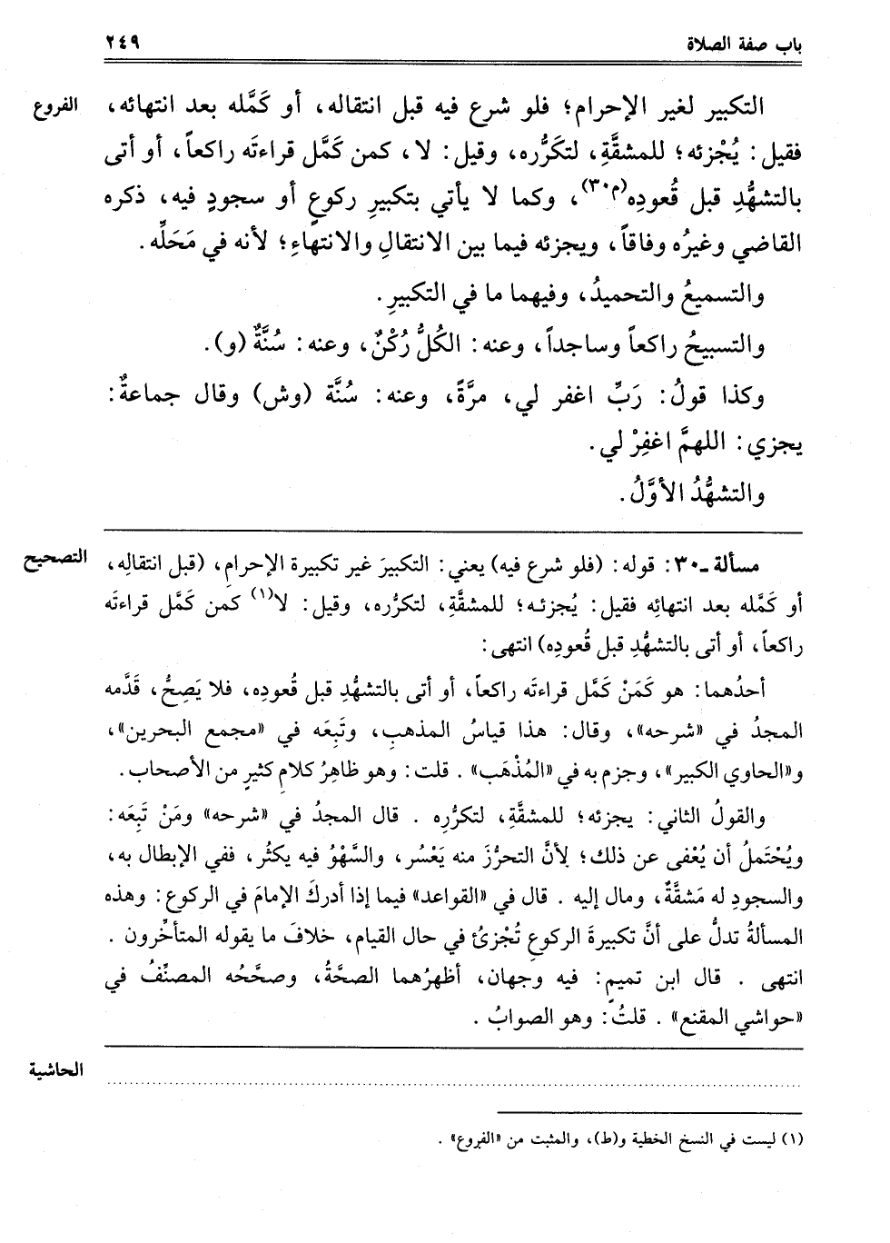 ـــــــــــــــــــــــــــــQمَسْأَلَةٌ 30: قَوْلُهُ: فَلَوْ شَرَعَ فِيهِ يَعْنِي التَّكْبِيرَ لِغَيْرِ الْإِحْرَامِ قَبْلَ انْتِقَالِهِ، أَوْ كَمَّلَهُ بَعْدَ انْتِهَائِهِ، فَقِيلَ: يُجْزِيه، لِلْمَشَقَّةِ لِتَكَرُّرِهِ، وَقِيلَ: لَا1 كَمَنْ كَمَّلَ قِرَاءَتَهُ رَاكِعًا، أَوْ أَتَى بِالتَّشَهُّدِ قَبْلَ قُعُودِهِ، انْتَهَى.