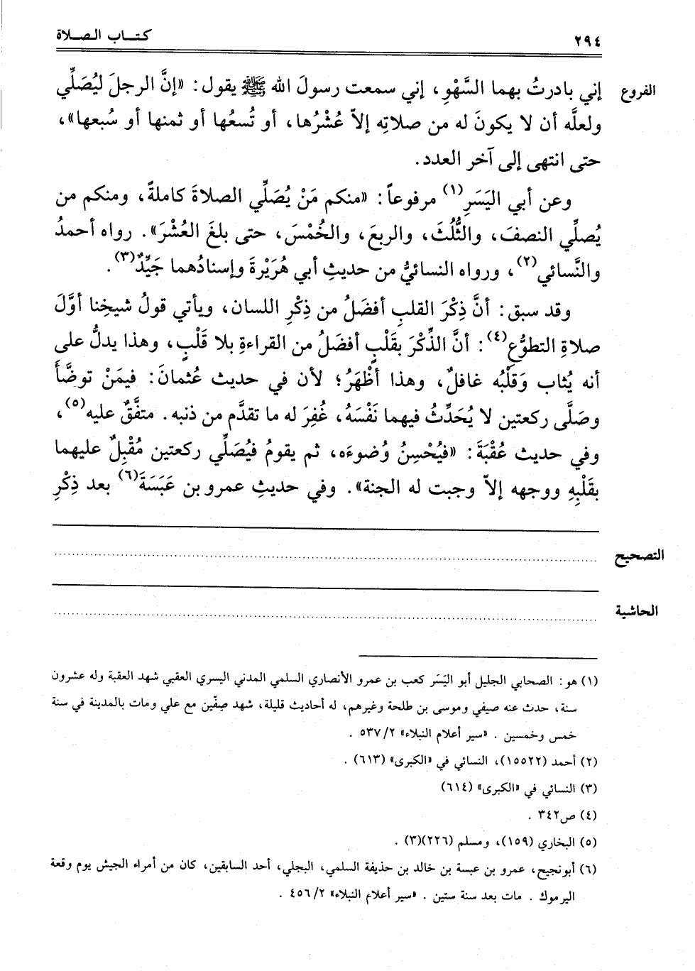 وَعَنْ أَبِي الْيُسْرِ1 مَرْفُوعًا: "مِنْكُمْ مَنْ يُصَلِّي الصَّلَاةَ كَامِلَةً، وَمِنْكُمْ مَنْ يُصَلِّي النِّصْفَ، وَالثُّلُثَ، وَالرُّبُعَ، وَالْخُمُسَ" حَتَّى بَلَغَ الْعُشْرَ رَوَاهُ أَحْمَدُ وَالنَّسَائِيُّ2، وَرَوَاهُ النَّسَائِيُّ مِنْ حَدِيثِ أَبِي هُرَيْرَةَ وَإِسْنَادُهُمَا جَيِّدٌ3.