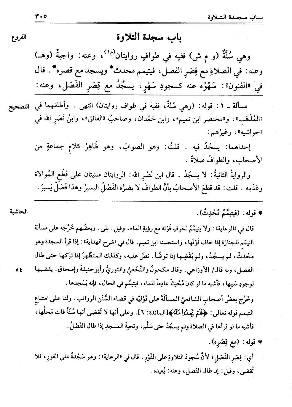 وهي سنة "وم ش" فَفِيهِ فِي طَوَافٍ رِوَايَتَانِ "م 1" وَعَنْهُ واجبة "وهـ" وَعَنْهُ فِي الصَّلَاةِ مَعَ قَصْرِ الْفَصْلِ، فَيَتَيَمَّمُ مُحْدِثٌ وَيَسْجُدُ مَعَ قَصْرِهِ، قَالَ فِي الْفُنُونِ سَهْوُهُ عَنْهُ كَسُجُودِ سَهْوٍ، وَيَسْجُدُ مَعَ قَصْرِ الفصل، وعنه: