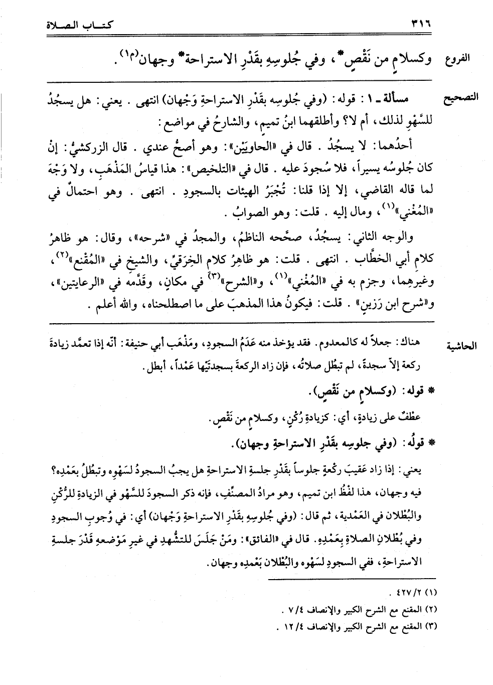 ـــــــــــــــــــــــــــــQمَسْأَلَةٌ 1: قَوْلُهُ: وَفِي جُلُوسِهِ بِقَدْرِ الِاسْتِرَاحَةِ هَلْ يَسْجُدُ لِلسَّهْوِ كَذَلِكَ وَجْهَانِ انْتَهَى، يَعْنِي هَلْ يَسْجُدُ لِلسَّهْوِ كَذَلِكَ، أَمْ لَا، وَأَطْلَقَهُمَا ابْنُ تميم، والشارح في مواضع: