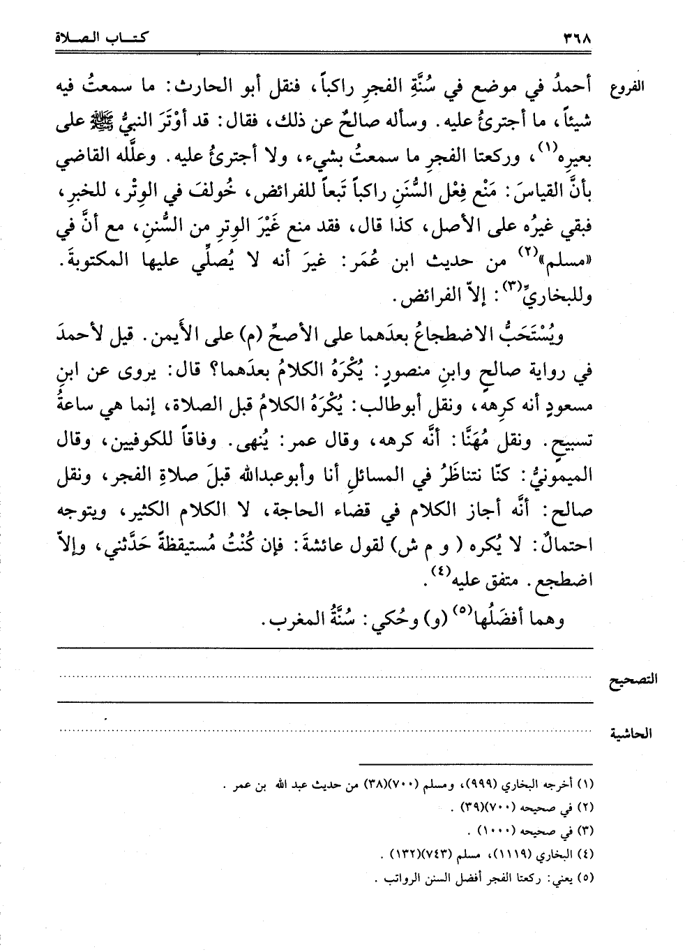 قِيلَ لِأَحْمَدَ فِي رِوَايَةِ صَالِحٍ وَابْنِ مَنْصُورٍ يُكْرَهُ الْكَلَامُ بَعْدَهُمَا؟ قَالَ: يُرْوَى عَنْ ابْنِ مَسْعُودٍ أَنَّهُ كَرِهَهُ، وَنَقَلَ أَبُو طَالِبٍ يُكْرَهُ الْكَلَامُ قَبْلَ الصَّلَاةِ، إنَّمَا هِيَ سَاعَةُ تَسْبِيحٍ، وَنَقَلَ مُهَنَّا أَنَّهُ كَرِهَهُ، وَقَالَ عُمَرُ: يُنْهَى، وِفَاقًا لِلْكُوفِييِّنَ. وَقَالَ الْمَيْمُونِيُّ: كُنَّا نَتَنَاظَرُ فِي الْمَسَائِلِ أَنَا وَأَبُو عَبْدِ اللَّهِ قَبْلَ صَلَاةِ الْفَجْرِ، وَنَقَلَ صَالِحٌ أَنَّهُ أَجَازَ الْكَلَامَ فِي قَضَاءِ الْحَاجَةِ، لَا الْكَلَامَ الْكَثِيرَ، وَيَتَوَجَّهُ احْتِمَالٌ لَا يُكْرَهُ "وم ش" لِقَوْلِ عَائِشَةَ "فَإِنْ كُنْتُ مُسْتَيْقِظَةً حَدَّثَنِي، وَإِلَّا اضْطَجَعَ. مُتَّفَقٌ عَلَيْهِ4.