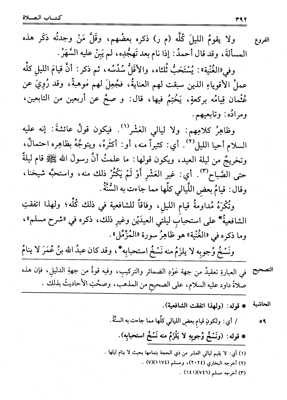 ـــــــــــــــــــــــــــــQفِي الْعِبَارَةِ تَعْقِيدٌ مِنْ جِهَةِ عَوْدِ الضَّمَائِرِ وَالتَّرْكِيبِ، وَفِيهِ قُوَّةٌ مِنْ جِهَةِ الدَّلِيلِ، فَإِنَّ هَذِهِ صَلَاةُ دَاوُد عَلَيْهِ السَّلَامُ، عَلَى الصَّحِيحِ من المذهب، وصحت الأحاديث بذلك.
