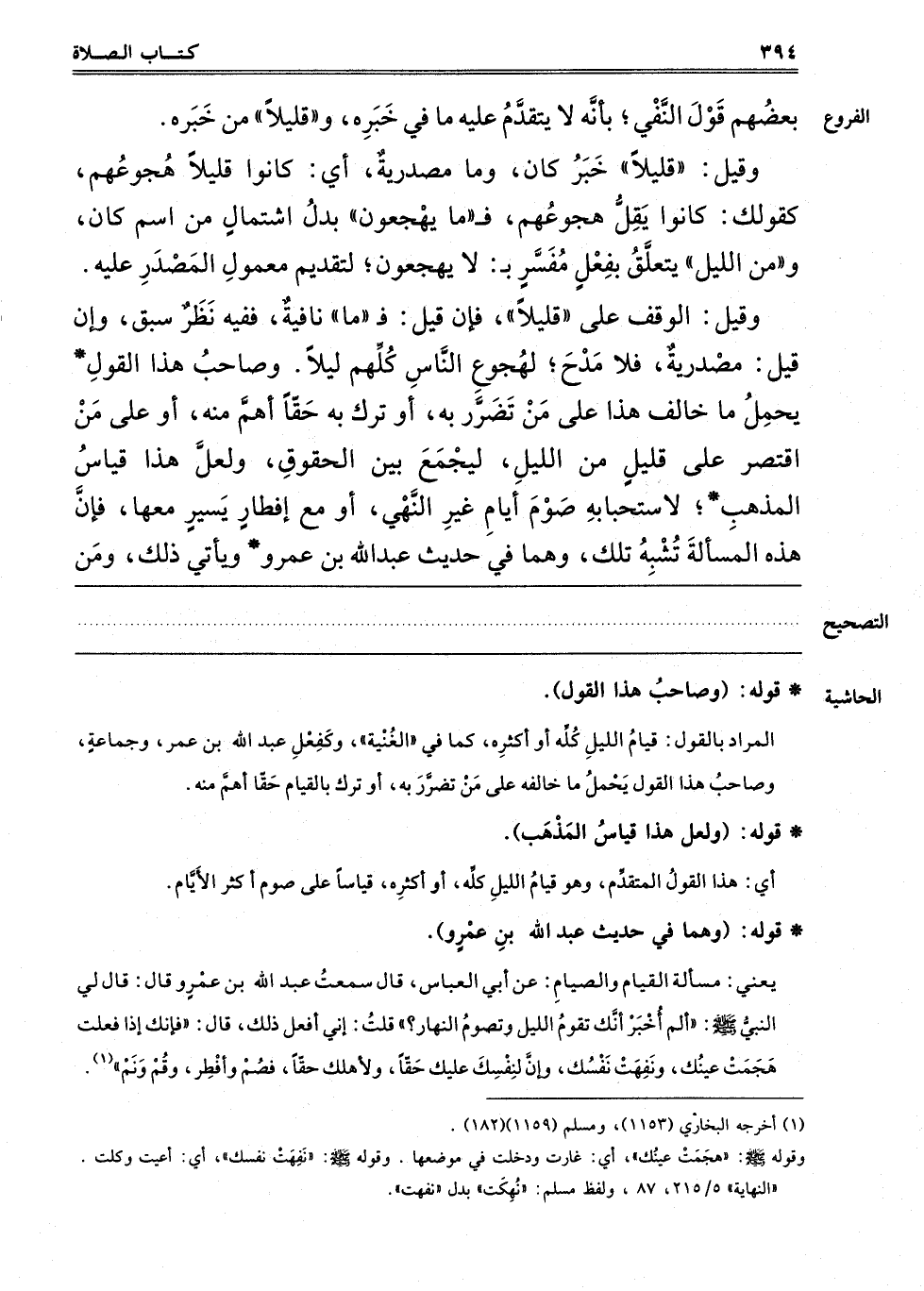 وَقَلِيلًا مِنْ خَبَرِهِ وَقِيلَ قَلِيلًا خَبَرُ كَانَ، وَمَا مَصْدَرِيَّةٌ، أَيْ كَانُوا قَلِيلًا هُجُوعُهُمْ، كَقَوْلِك كَانُوا يَقِلُّ هُجُوعُهُمْ "فَيَهْجَعُونَ" بَدَلُ اشْتِمَالٍ مِنْ اسْمِ كَانَ، وَمِنْ اللَّيْلِ يتعلق بفعل مفسر ب يهجعون لِتَقْدِيمِ مَعْمُولِ الْمَصْدَرِ عَلَيْهِ، وَقِيلَ الْوَقْفُ عَلَى قليلا فَإِنْ قِيلَ فَمَا نَافِيَةٌ فَفِيهِ نَظَرٌ سَبَقَ، وَإِنْ قِيلَ مَصْدَرِيَّةٌ فَلَا مَدْحَ لِهُجُوعِ النَّاسِ كُلِّهِمْ لَيْلًا، وَصَاحِبُ هَذَا الْقَوْلِ يَحْمِلُ مَا خَالَفَ هَذَا عَلَى مَنْ تَضَرَّرَ بِهِ، أَوْ تَرَكَ حَقًّا أَهَمَّ مِنْهُ، أَوْ عَلَى مَنْ اقْتَصَرَ عَلَى قَلِيلٍ مِنْ اللَّيْلِ، لِيَجْمَعَ بَيْنَ الْحُقُوقِ، وَلَعَلَّ هَذَا قِيَاسُ الْمَذْهَبِ لِاسْتِحْبَابِهِ صَوْمَ أَيَّامِ غَيْرِ النَّهْيِ، أَوْ مَعَ إفْطَارٍ يَسِيرٍ مَعَهَا، فَإِنَّ هَذِهِ الْمَسْأَلَةَ تُشْبِهُ تِلْكَ، وَهُمَا فِي حَدِيثِ عَبْدِ اللَّهِ بْنِ عُمَرَ وَيَأْتِي ذلك، ومن