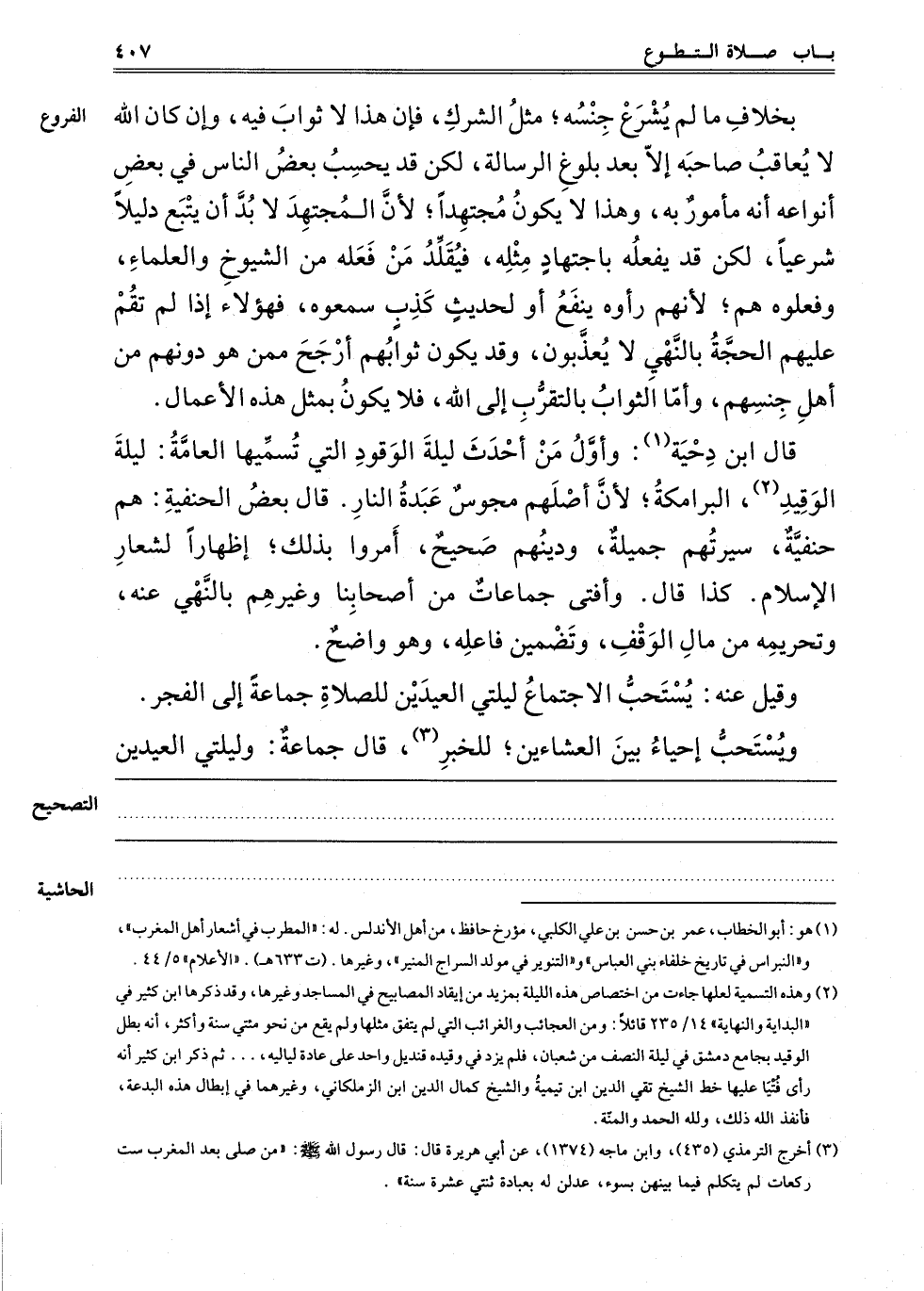 قَالَ ابْنُ دِحْيَةَ1: وَأَوَّلُ مَنْ أَحْدَثَ لَيْلَةَ الْوَقُودِ الَّتِي تُسَمِّيهَا الْعَامَّةُ لَيْلَةَ الْوَقِيدِ2 الْبَرَامِكَةُ، لِأَنَّ أَصْلَهُمْ مَجُوسُ عَبَدَةِ النَّارِ، قَالَ بَعْضُ الْحَنَفِيَّةِ: هُمْ حَنَفِيَّةٌ، سِيرَتُهُمْ جَمِيلَةٌ، وَدِينُهُمْ صَحِيحٌ، أَمَرُوا بِذَلِكَ إظْهَارًا لِشِعَارِ الْإِسْلَامِ، كَذَا قَالَ، وَأَفْتَى جَمَاعَاتٌ مِنْ أَصْحَابِنَا وَغَيْرِهِمْ بِالنَّهْيِ عَنْهُ، وَتَحْرِيمِهِ مِنْ مَالِ الْوَقْفِ، وَتَضْمِينِ فَاعِلِهِ، وَهُوَ وَاضِحٌ.