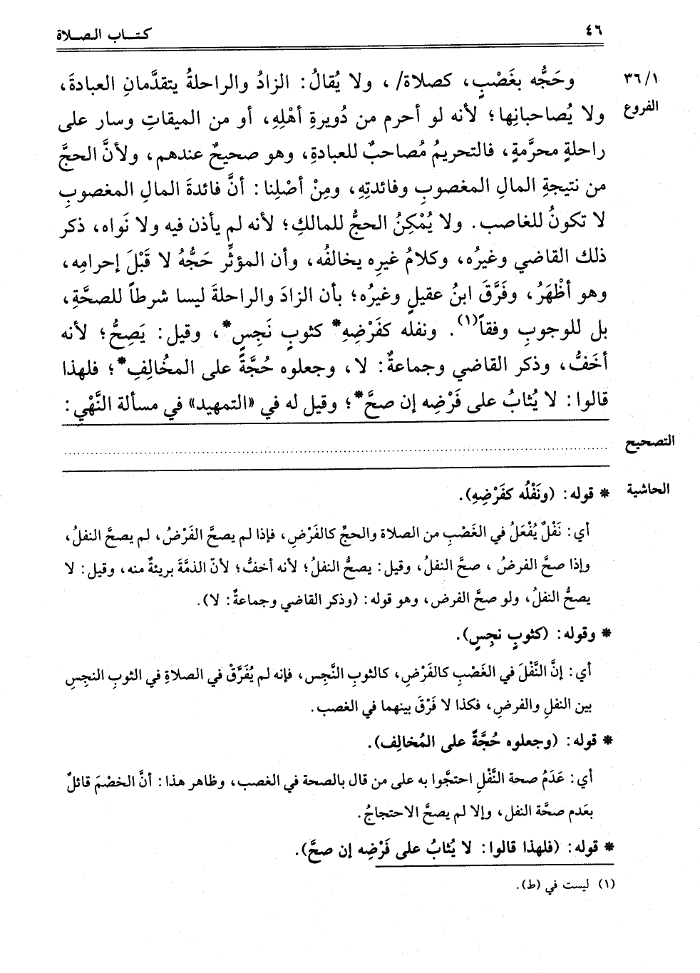 وَحَجُّهُ بِغَصْبٍ كَصَلَاةٍ، وَلَا يُقَالُ: الزَّادُ وَالرَّاحِلَةُ يَتَقَدَّمَانِ الْعِبَادَةَ، وَلَا يُصَاحِبَانِهَا، لِأَنَّهُ لَوْ أَحْرَمَ مِنْ دُوَيْرَةِ أَهْلِهِ أَوْ مِنْ الْمِيقَاتِ وَسَارَ عَلَى رَاحِلَةٍ مُحَرَّمَةٍ فَالتَّحْرِيمُ مُصَاحِبٌ لِلْعِبَادَةِ، وَهُوَ صَحِيحٌ عِنْدَهُمْ، وَلِأَنَّ الْحَجَّ مِنْ نَتِيجَةِ الْمَالِ الْمَغْصُوبِ وَفَائِدَتِهِ، وَمِنْ أَصْلِنَا أَنَّ فَائِدَةَ الْمَالِ الْمَغْصُوبِ لَا تَكُونُ لِلْغَاصِبِ، وَلَا يُمْكِنُ الْحَجُّ لِلْمَالِكِ، لِأَنَّهُ لَمْ يَأْذَنْ فِيهِ وَلَا نَوَاهُ، ذَكَرَ الْقَاضِي وَغَيْرُهُ، وَكَلَامُ غَيْرِهِ يُخَالِفُهُ، وَأَنَّ الْمُؤْثَرَ حَجُّهُ لَا قَبْلَ إحْرَامِهِ، وَهُوَ أَظْهَرُ، وَفَرَّقَ ابْنُ عَقِيلٍ وَغَيْرُهُ بِأَنَّ الزَّادَ وَالرَّاحِلَةَ ليسا شرطا للصحة بل للوجوب وفقا1. فَقَالُوا: نَفْلُهُ كَفَرْضِهِ كَثَوْبٍ نَجِسٍ، وَقِيلَ يَصِحُّ، لِأَنَّهُ أَخَفُّ وَذَكَرَ الْقَاضِي وَجَمَاعَةٌ لَا، وَجَعَلُوهُ حُجَّةً عَلَى الْمُخَالِفِ، فَلِهَذَا قَالُوا: لَا يُثَابُ عَلَى فَرْضِهِ إنْ صَحَّ، وَقِيلَ لَهُ فِي التمهيد في مسألة النهي:.