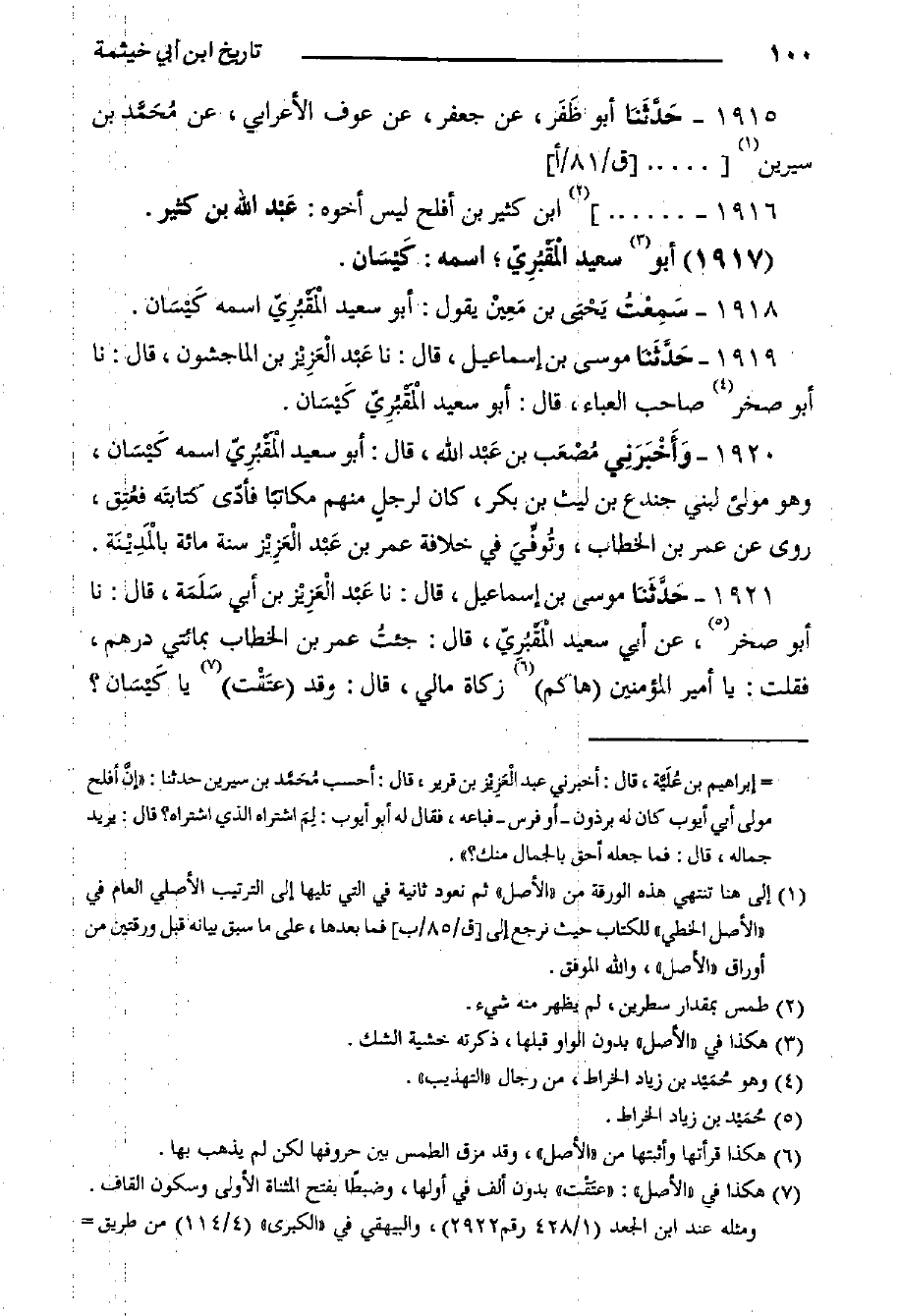 ١٩١٧) أبو سعيد الْمَقْبُرِيّ؛ اسمه: كَيْسَان.