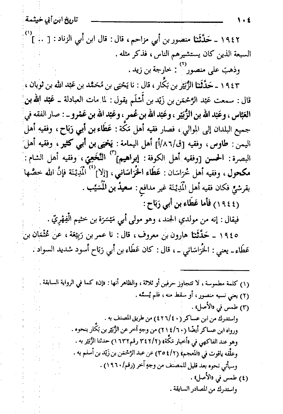 ١٩٤٤) فأما عَطَاء بن أبي رَبَاح: