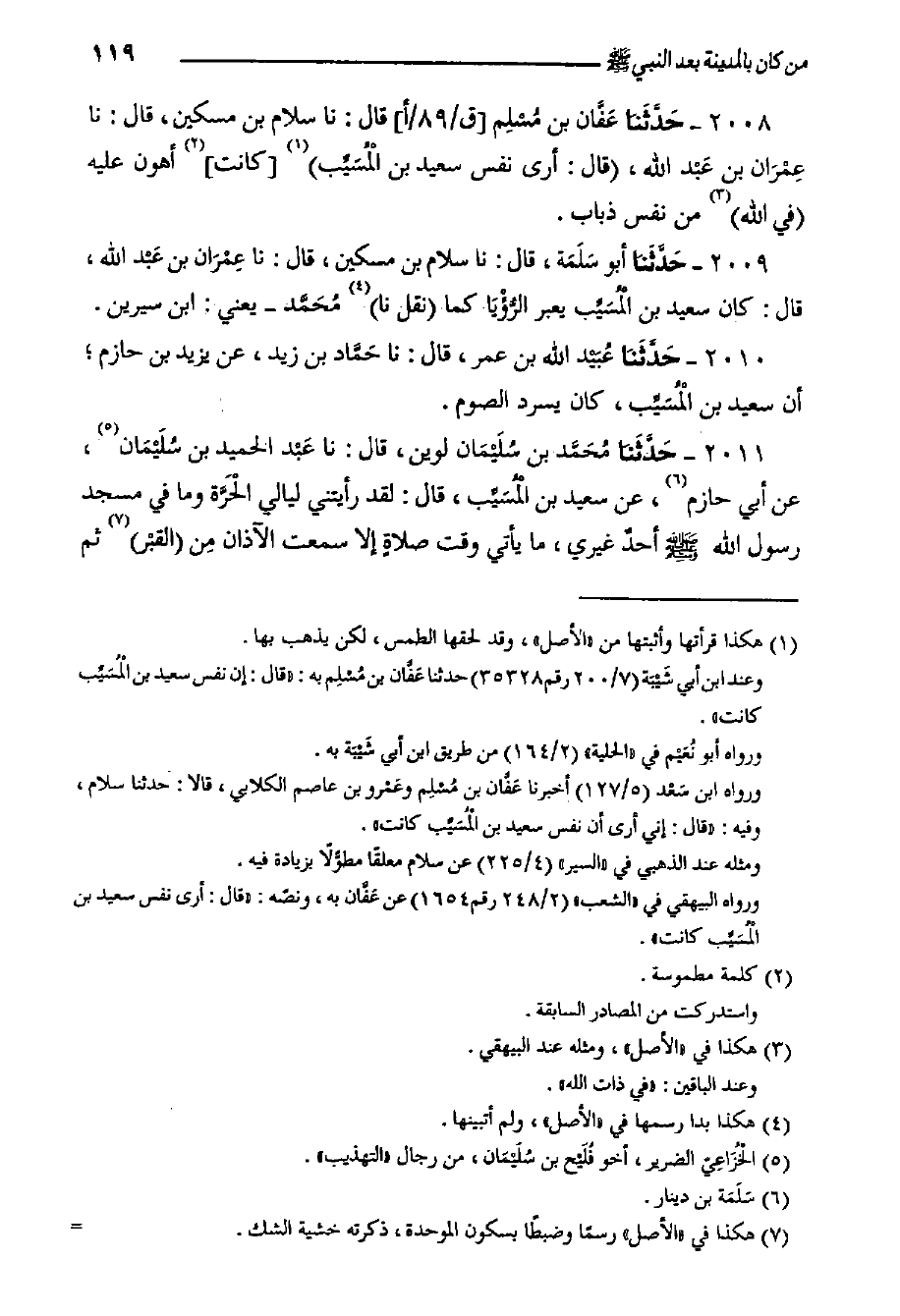 ٢٠٠٩- حَدَّثَنا أبو سَلَمَة، قال: حدثنا سلام بن مسكين، قال: حدثنا عِمْرَان بن عَبْد الله، قَالَ: كان سعيد بن الْمُسَيَّب يعبر الرُّؤْيَا كما نقل حدثنا مُحَمَّد - يعني: ابن سيرين.