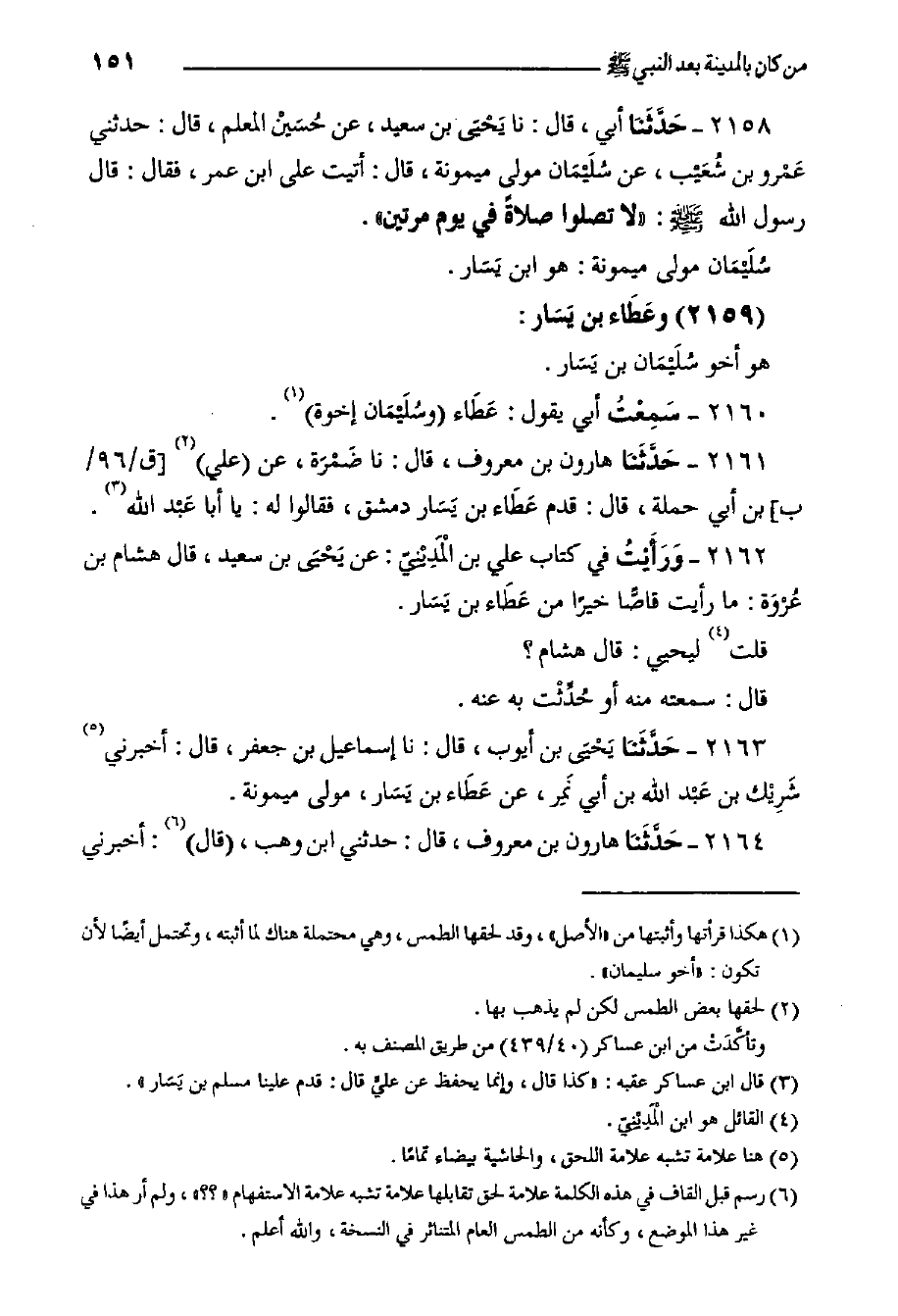 ٢١٥٩- وعَطَاء بن يَسَار: