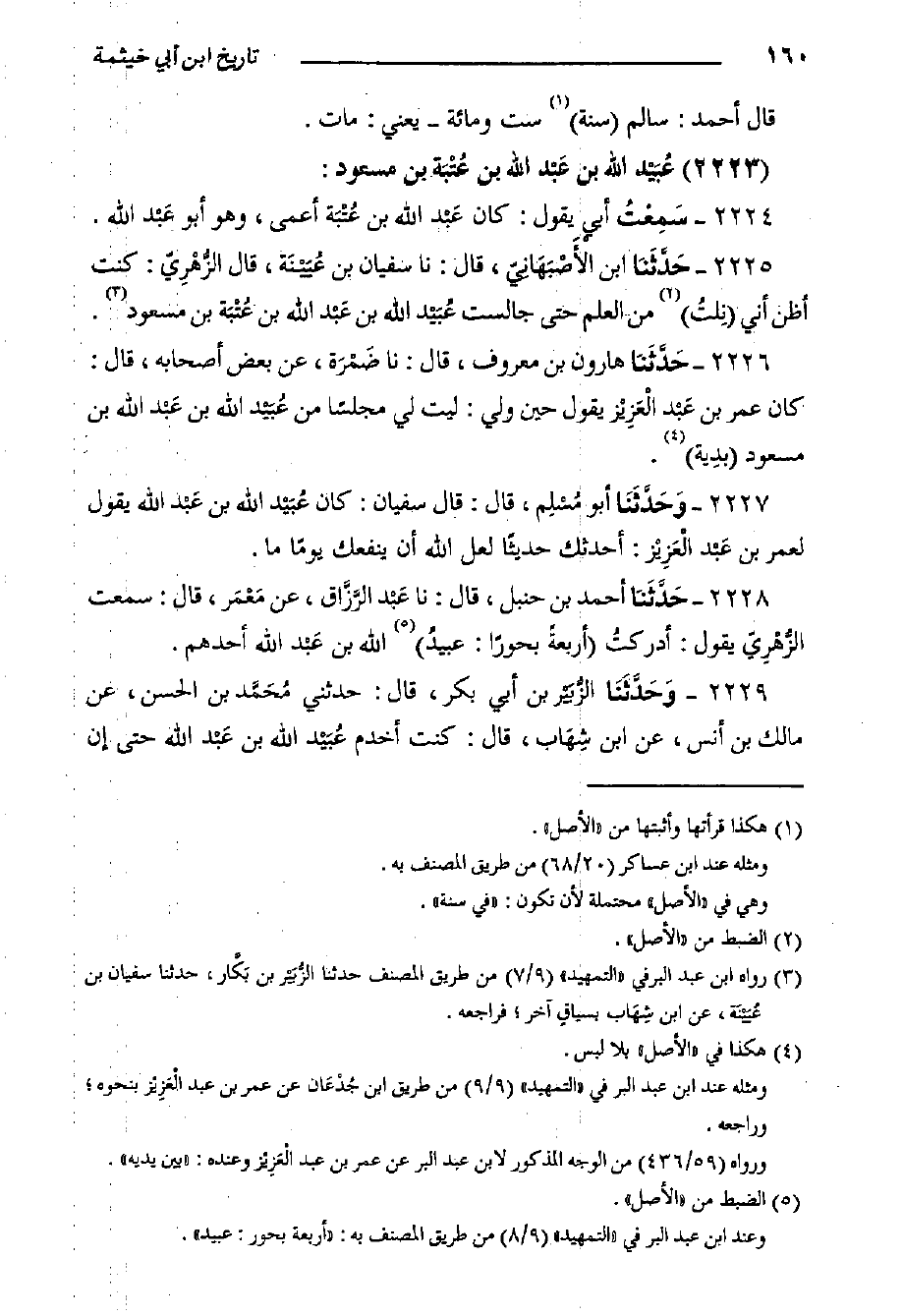 ٢٢٢٨- حَدَّثَنا أَحْمَد بْن حنبل، قَالَ: حَدَّثَنَا عَبْد الرَّزَّاق، عَنْ مَعْمَر، قَالَ: سمعت الزُّهْرِيّ يقول: أدركتُ (أربعة بحورا: عبيدُ الله بن عَبْد الله أحدهم.
