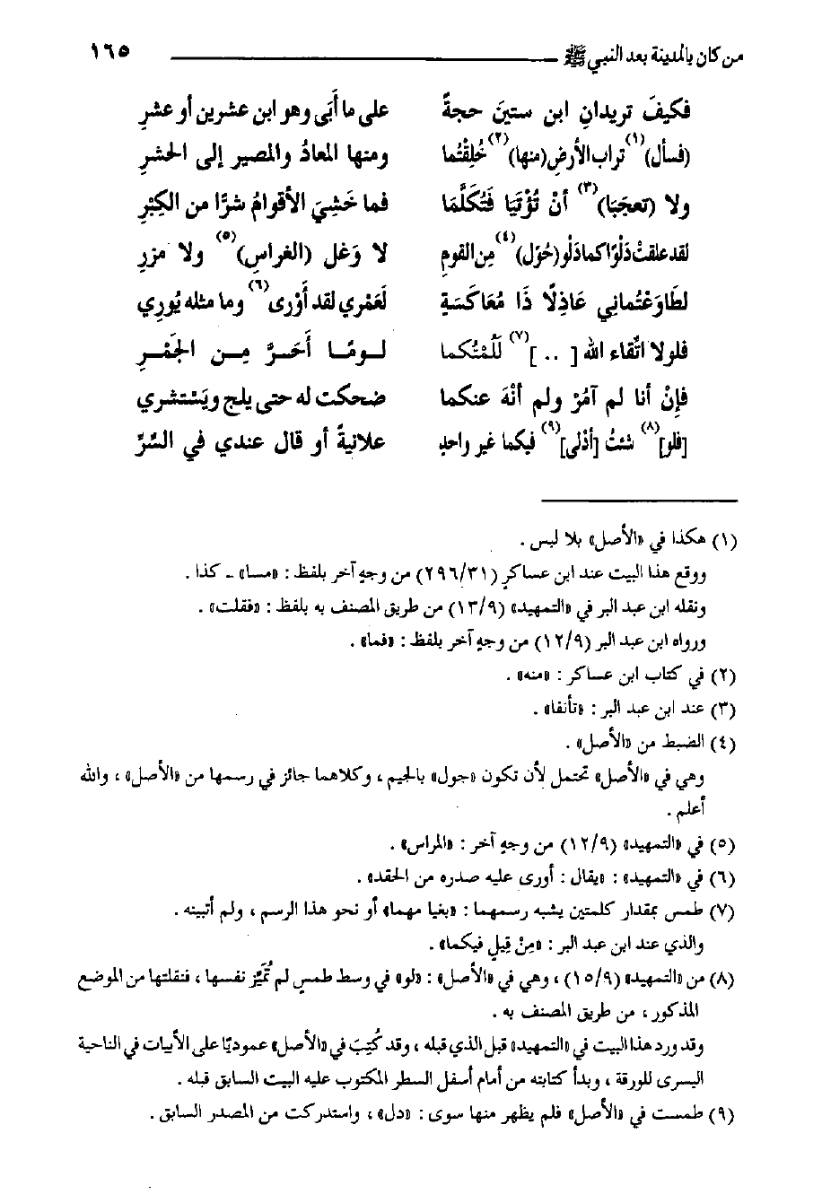 فسأل تراب الأرضِ منها خُلِقْتُما ... ومنها المعادُ والمصير إِلَى الحشرِ