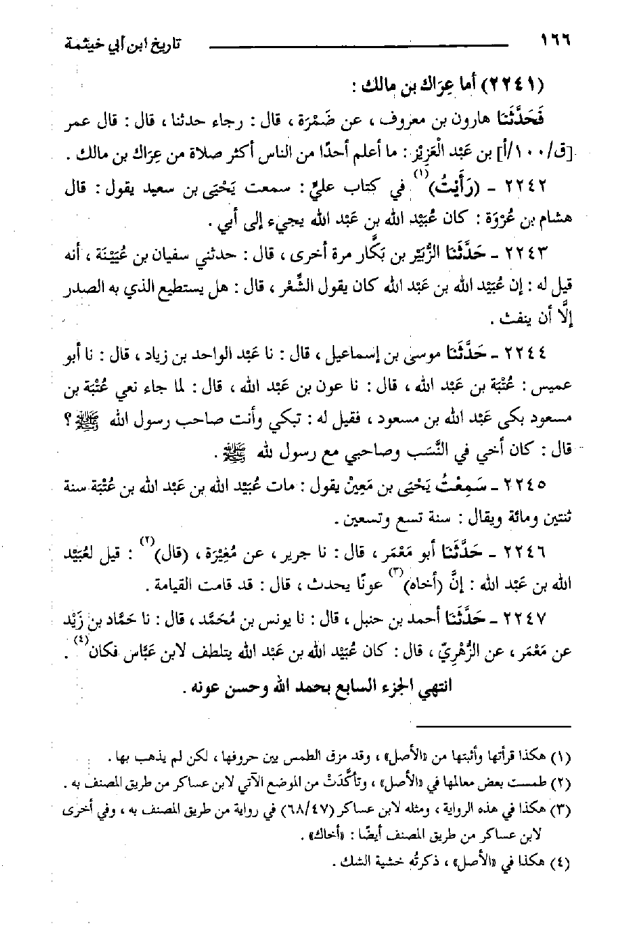 كتاب التاريخ الكبير لابن أبي خيثمة - السفر الثالث - ط الفاروق (اسم الجزء: 2)