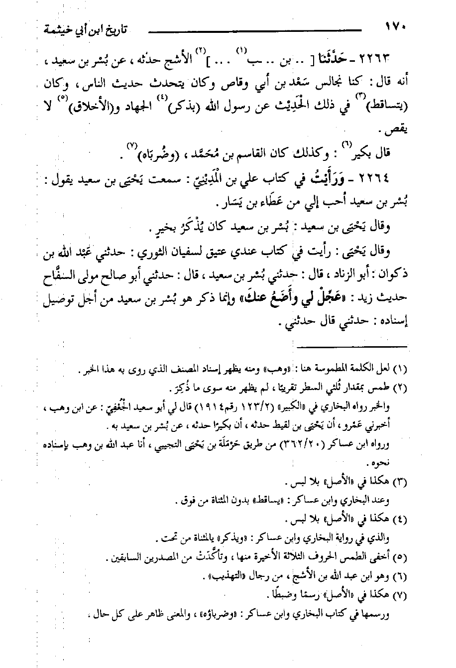 ٢٢٦٤- وَرَأَيْتُ في كتاب علي بن الْمَدِيْنِيّ: سمعت يَحْيَى بن سعيد يقول: بُسْر بن سعيد أحب إلي من عَطَاء بن يَسَار.