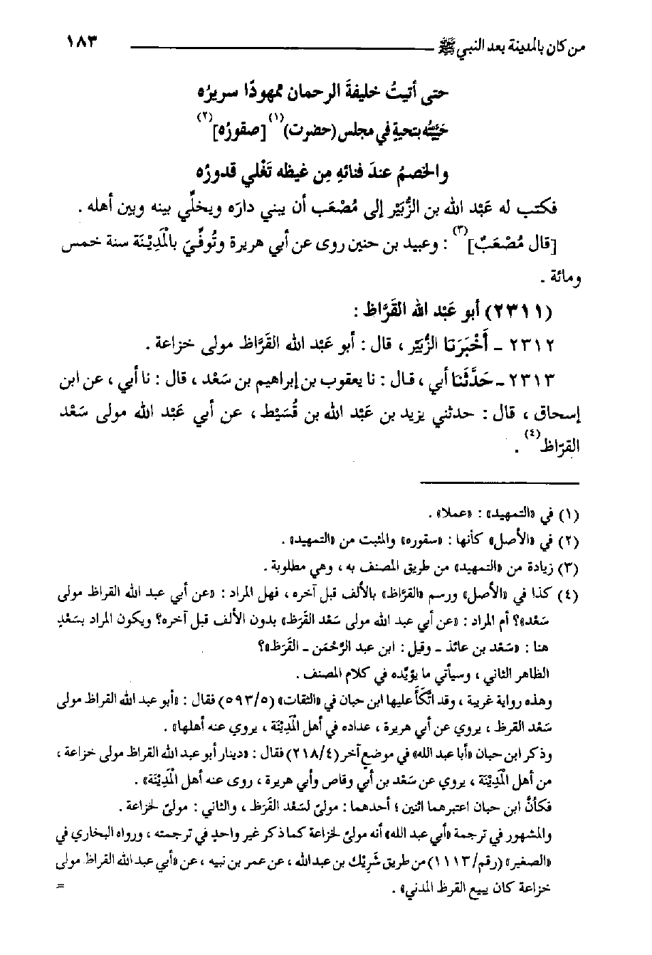٢٣١٢- أَخْبَرَنَا الزُّبَيْر، قَالَ: أبو عَبْد الله القَرَّاظ مولى خزاعة.
