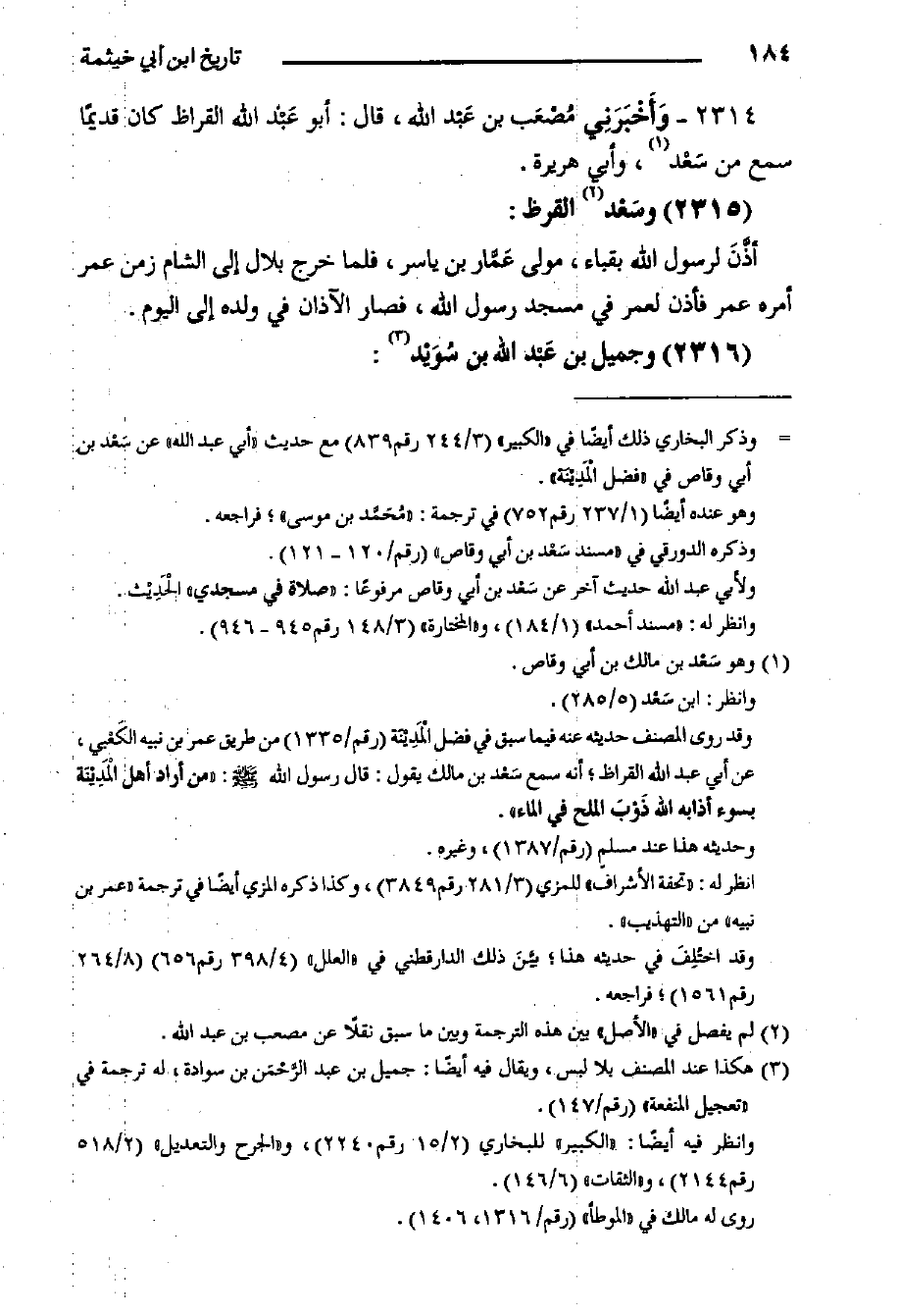 ٢٣١٤- وَأَخْبَرَنِي مُصْعَب بْن عَبْد اللَّهِ، قَالَ: أَبُو عَبْد اللَّهِ الْقَرَّاظُ كان قديما سمع من سَعْد، وأبي هريرة.
