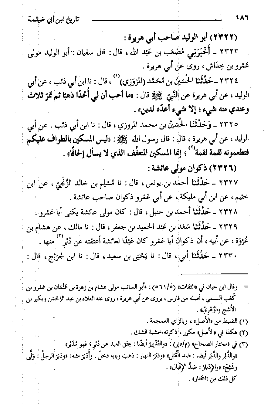 ٢٣٢٨- حَدَّثَنا أحمد بن حنبل، قَالَ: كان مولى عائشة يكنى أبا عَمْرو.