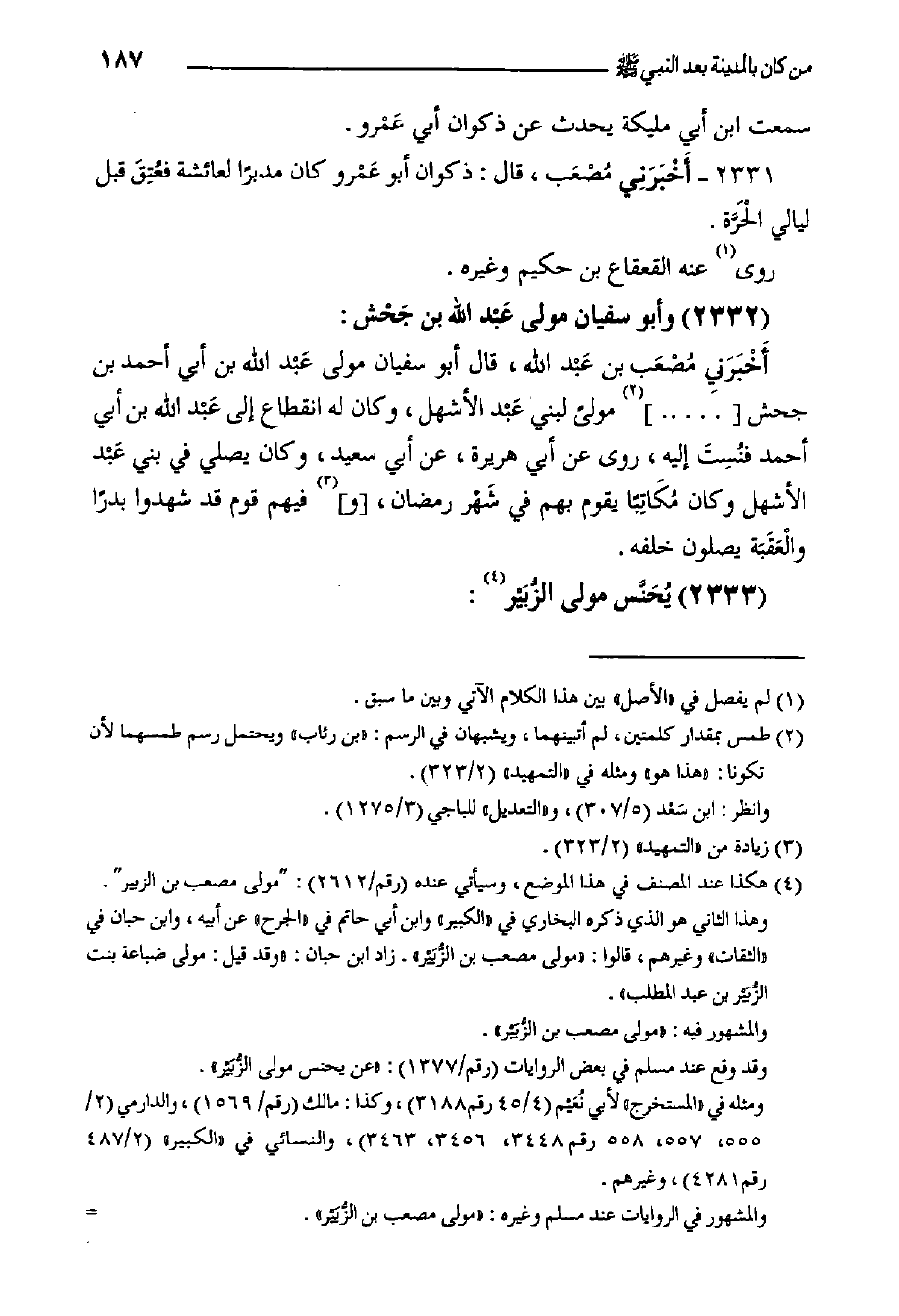 ٢٣٣٣) يُحَنَّس مولى الزُّبَيْر