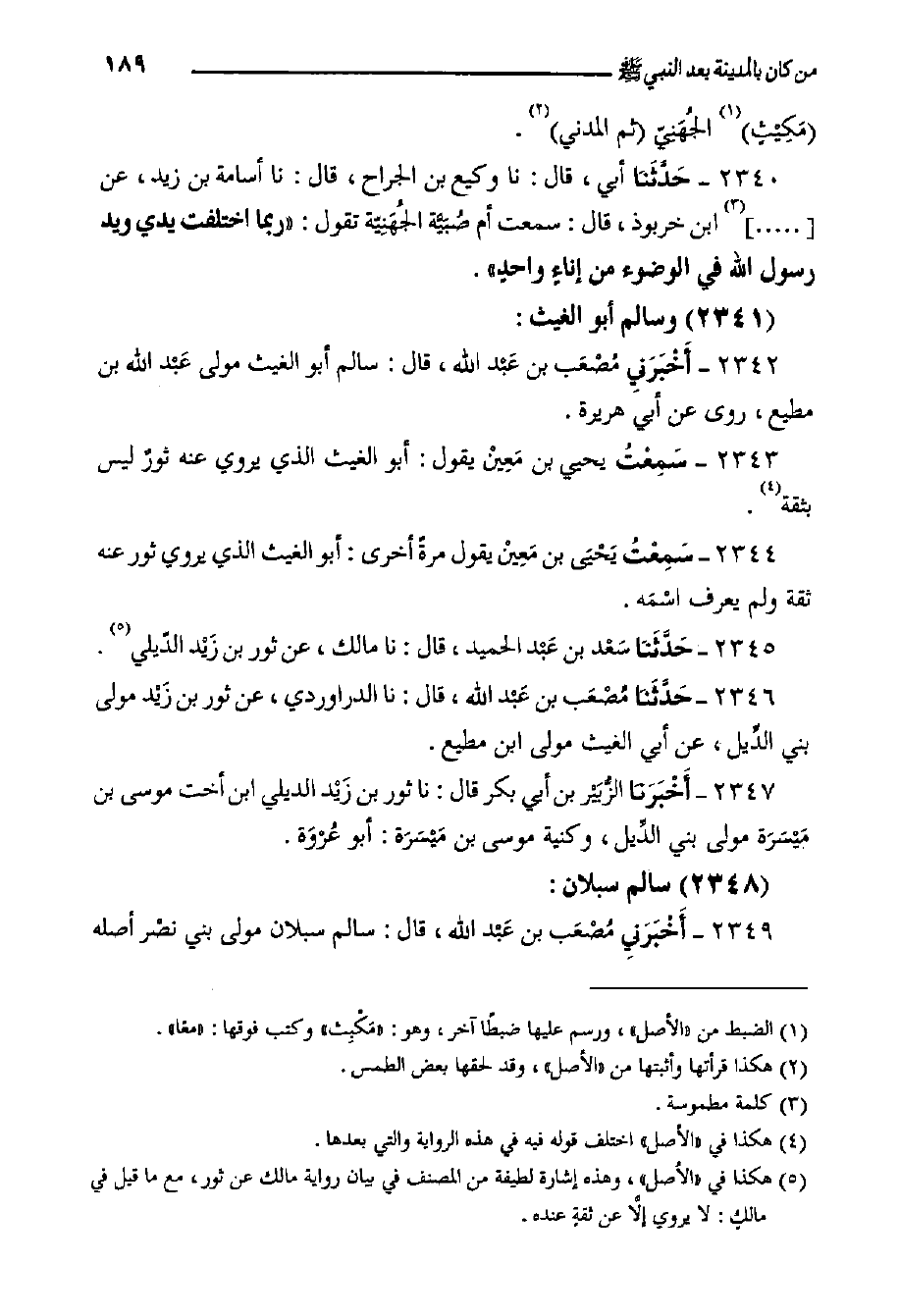 ٢٣٤٦- حَدَّثَنا مُصْعَب بن عَبْد الله، قال: حدثنا الدراوردي، عن ثور بن زَيْد مولى بني الدِّيل، عن أبي الغيث مولى ابن مطيع.