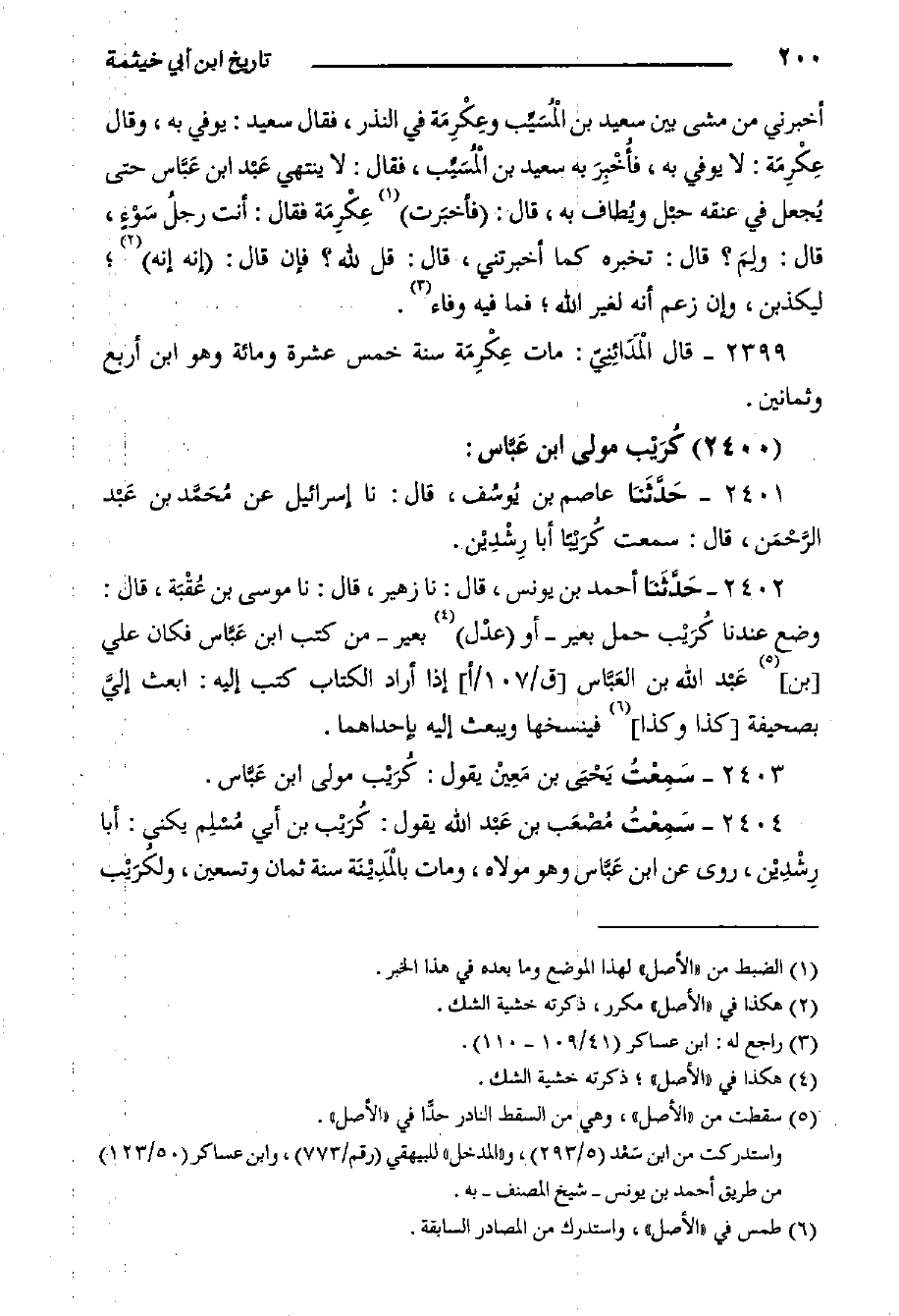 ٢٤٠٣- سَمِعْتُ يَحْيَى بن مَعِيْن يقول: كُرَيْب مولى ابن عَبَّاس.