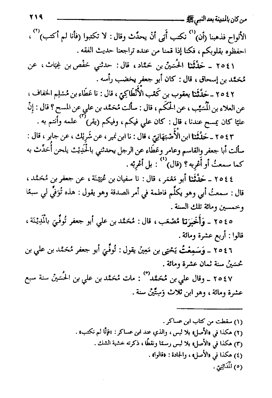 ٢٥٤٣- حَدَّثَنا ابْنُ الأَصْبَهَانِيّ، قال: حدثنا ابن نمير، عَنْ شَرِيْك، عَنْ جَابِرٍ، قَالَ: سَأَلْتُ أَبَا جَعْفَرٍ والقاسم وعامر وعَطَاء عَنِ الرَّجُلِ يُحَدِّثُنِي بالْحَدِيْث يَلْحَنُ أُحَدِّث بِهِ كَمَا سمعتُ أَوْ أَعْرِبه؟ قَالَ: بِلْ أعْرِبْه.