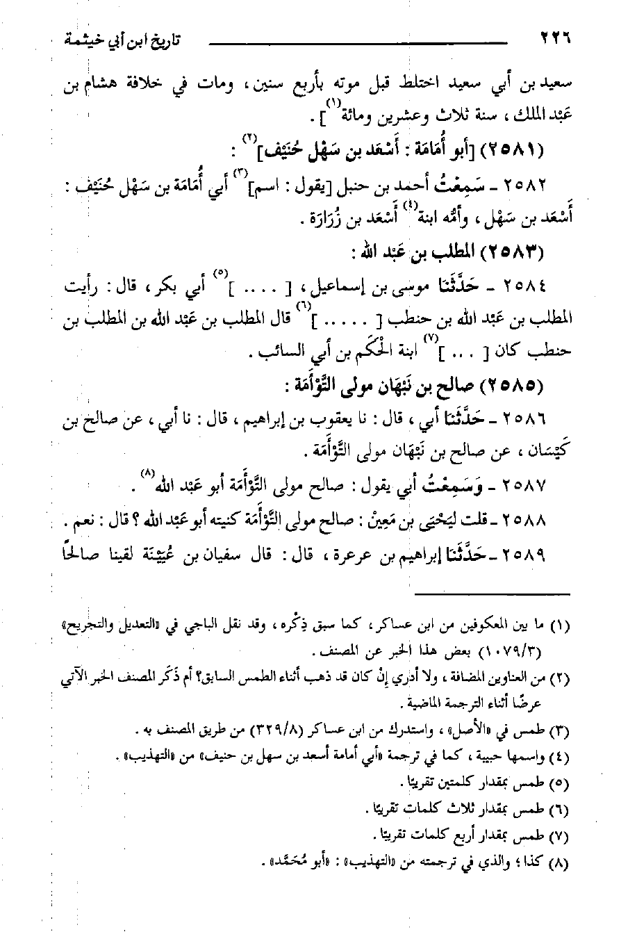 كتاب التاريخ الكبير لابن أبي خيثمة - السفر الثالث - ط الفاروق (اسم الجزء: 2)