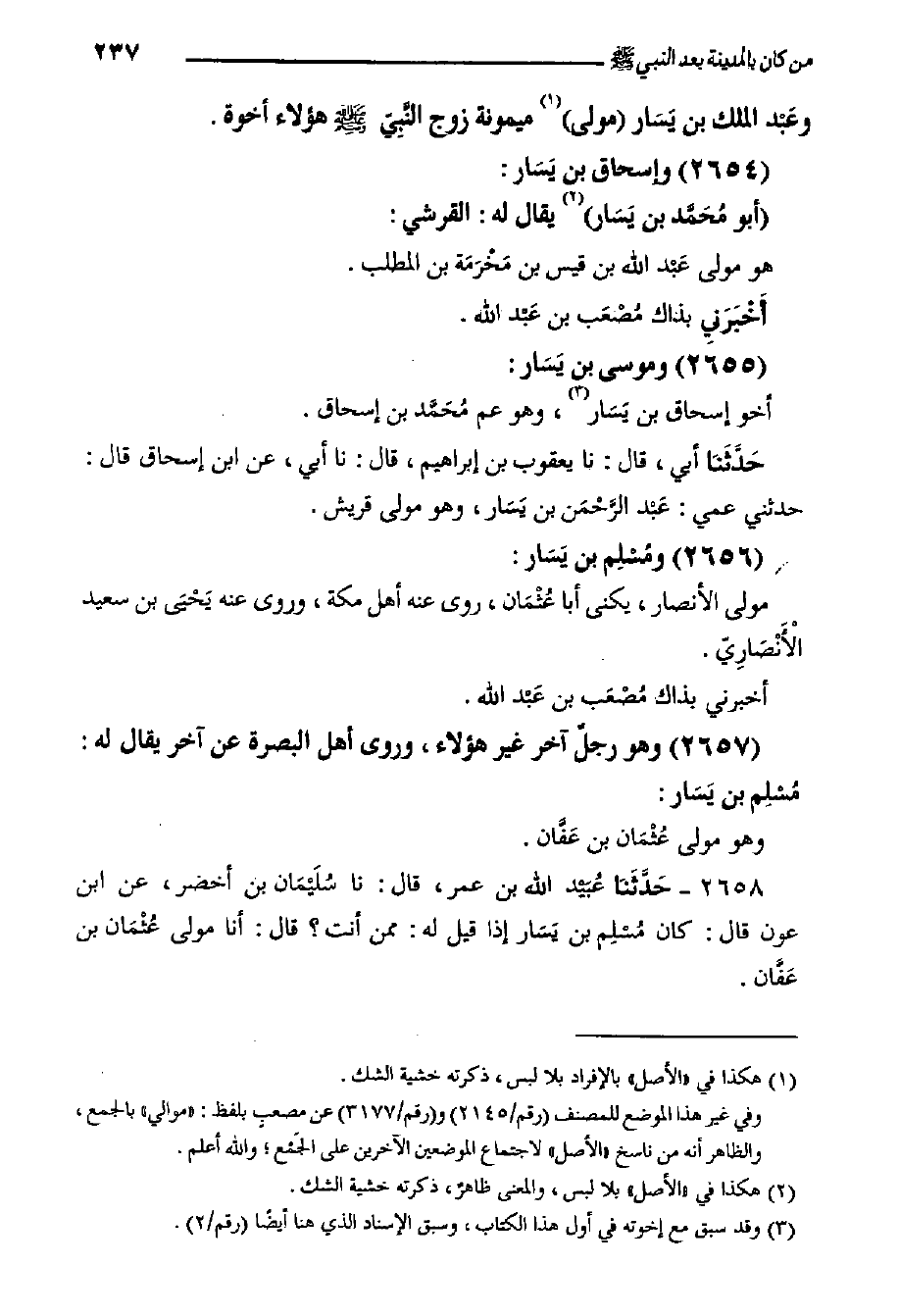 ٢٦٥٧- وهو رجلٌ آخر غير هؤلاء، وروى أهل البصرة عن آخر يقال له: مُسْلِم بن يَسَار: