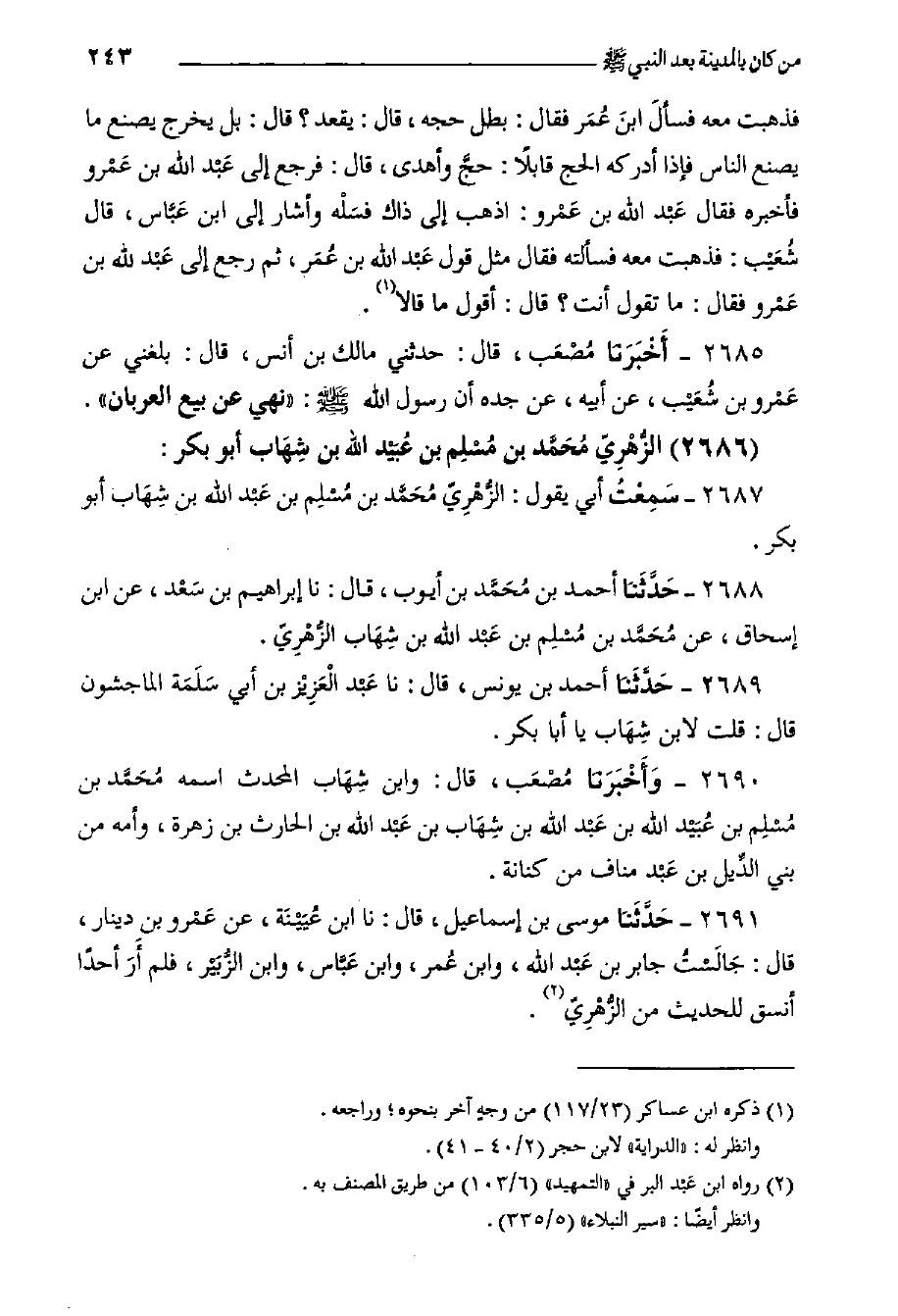٢٦٨٦) الزُّهْرِيّ مُحَمَّد بن مُسْلِم بن عُبَيْد الله بن شِهَاب أبو بكر: