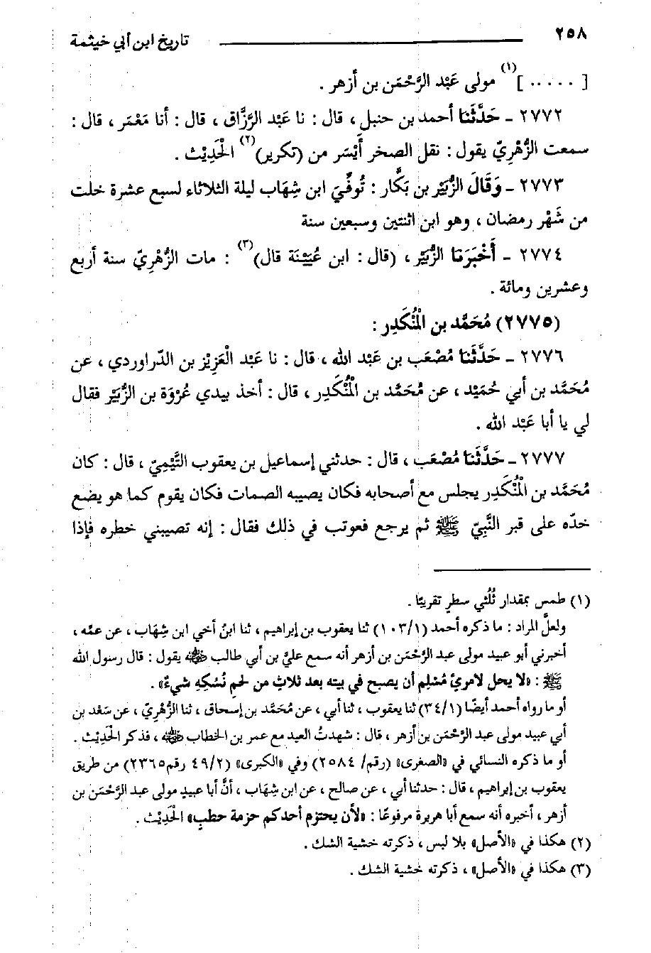 كتاب التاريخ الكبير لابن أبي خيثمة - السفر الثالث - ط الفاروق (اسم الجزء: 2)