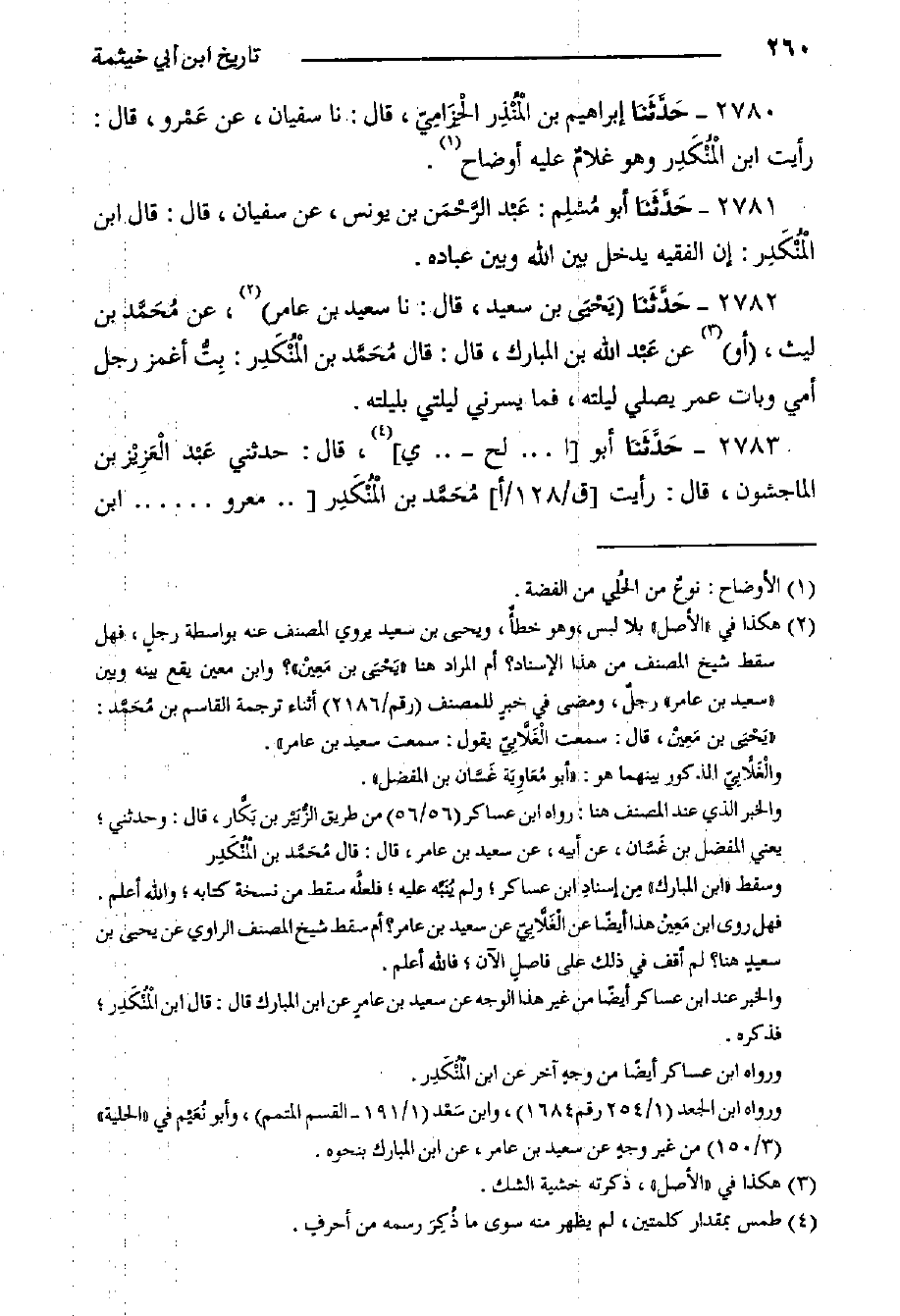 ٢٧٨٠- حَدَّثَنا إِبْرَاهِيم بْن الْمُنْذِر الْحِزَامِيّ، قال: حدثنا سفيان، عن عَمْرو، قَالَ: رأيت ابن الْمُنْكَدِر وهو غلامٌ عَلَيْهِ أوضاح.