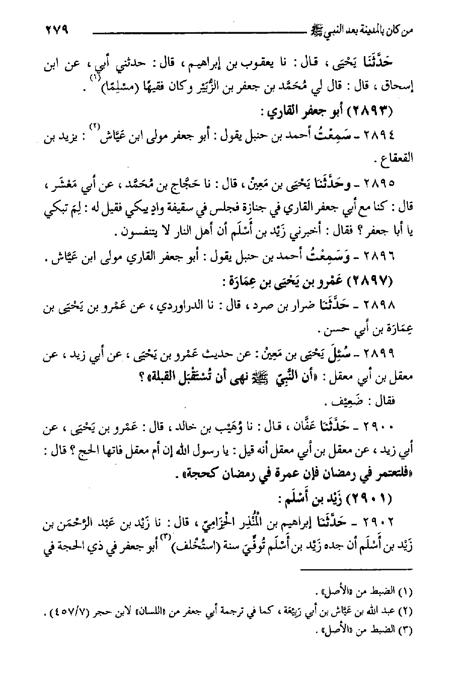 ٢٩٠٢- حَدَّثَنا إبراهيم بن الْمُنْذِر الْحِزَامِيّ، قال: حدثنا زَيْد بن عَبْد الرَّحْمَن بن زَيْد بن أَسْلَم أن جده زَيْد بن أَسْلَم تُوفِّيَ سنة استُخْلف أبو جعفر في ذي الحجة ف