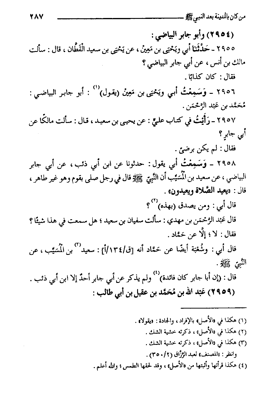 ٢٩٥٦- وَسَمِعْتُ أبي ويَحْيَى بن مَعِيْن يقول: أبو جابر البياضي: مُحَمَّد بن عَبْد الرَّحْمَن.