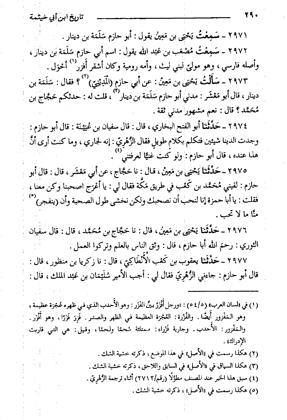 ٢٩٧١- سَمِعْتُ يَحْيَى بْن مَعِيْن يَقُولُ: أبو حازم سَلَمَة بن دينار.