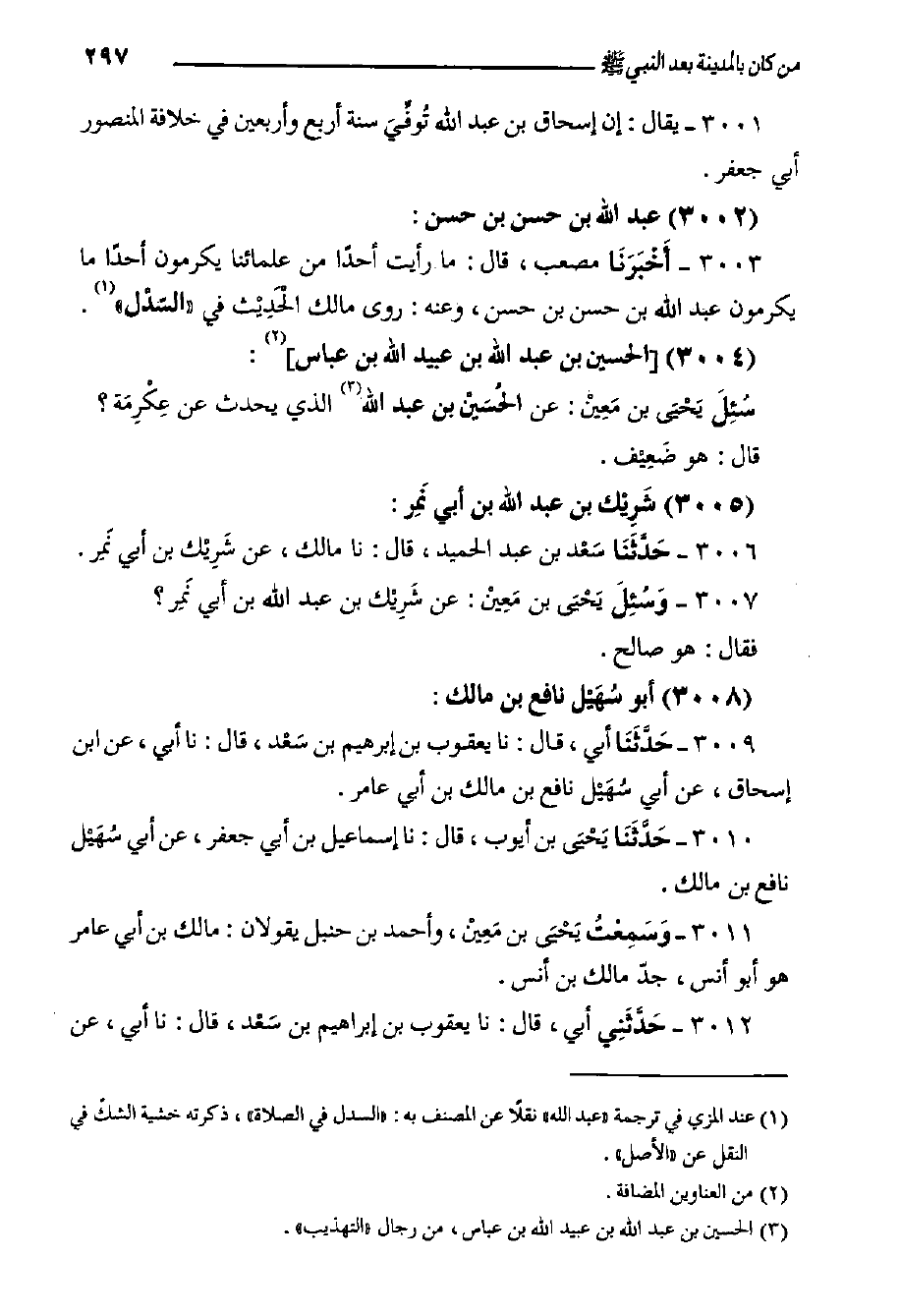 ٣٠٠٩- حَدَّثَنَا أبي، قال: حدثنا يعقوب بن إبرهيم بن سَعْد، قَالَ: حَدَّثَنَا أَبِي، عَنِ ابن إِسْحَاقَ، عن أبي سُهَيْل نافع بن مالك بن أبي عامر.