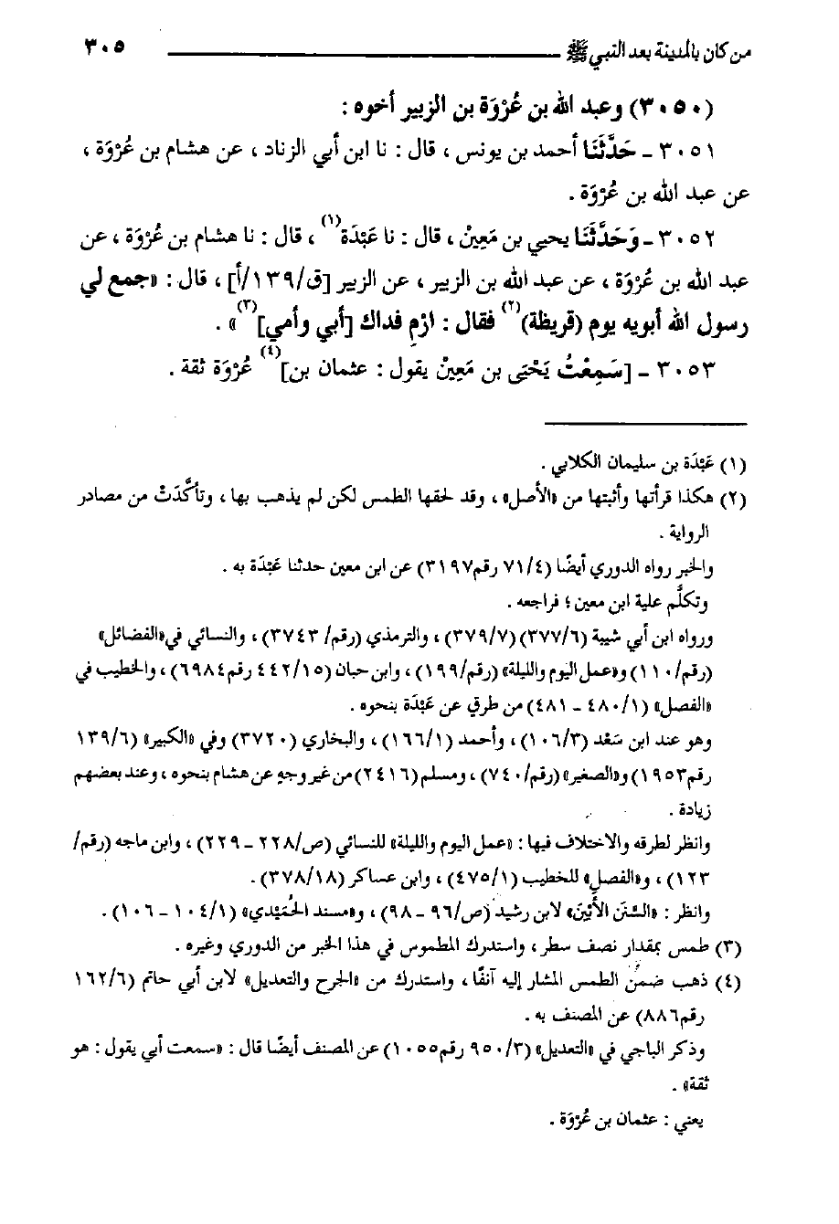 ٣٠٥٣- سَمِعْتُ يَحْيَى بن مَعِيْن يقول: عثمان بن عُرْوَة ثقة
