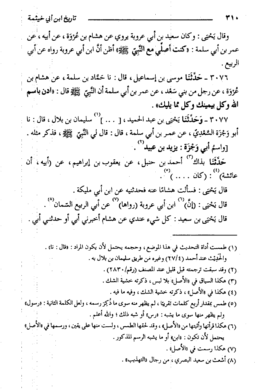كتاب التاريخ الكبير لابن أبي خيثمة - السفر الثالث - ط الفاروق (اسم الجزء: 2)