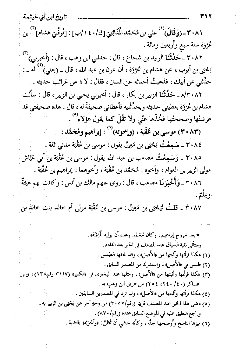 كتاب التاريخ الكبير لابن أبي خيثمة - السفر الثالث - ط الفاروق (اسم الجزء: 2)