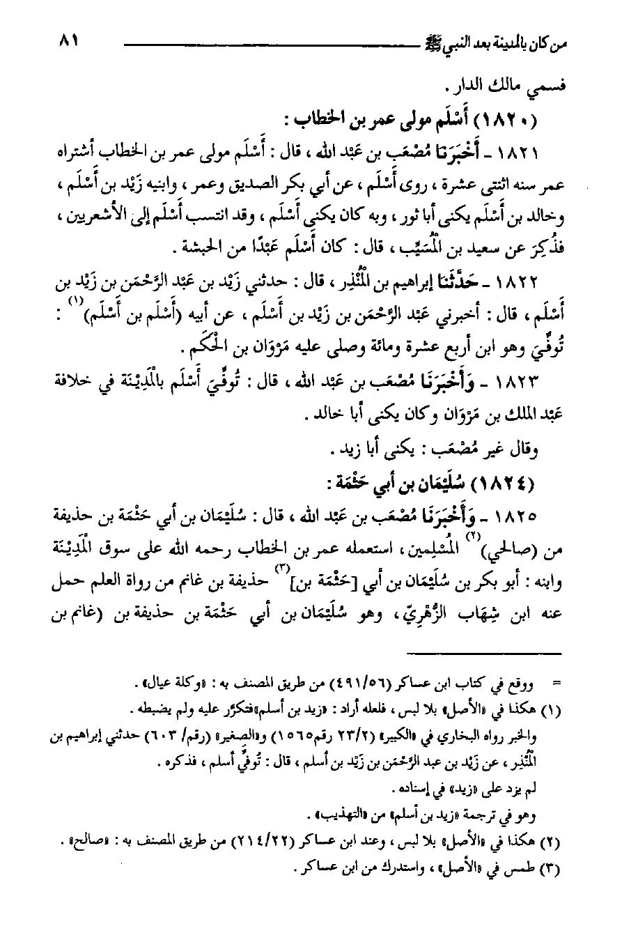 ١٨٢٠) أَسْلَم مولى عمر بن الخطاب: