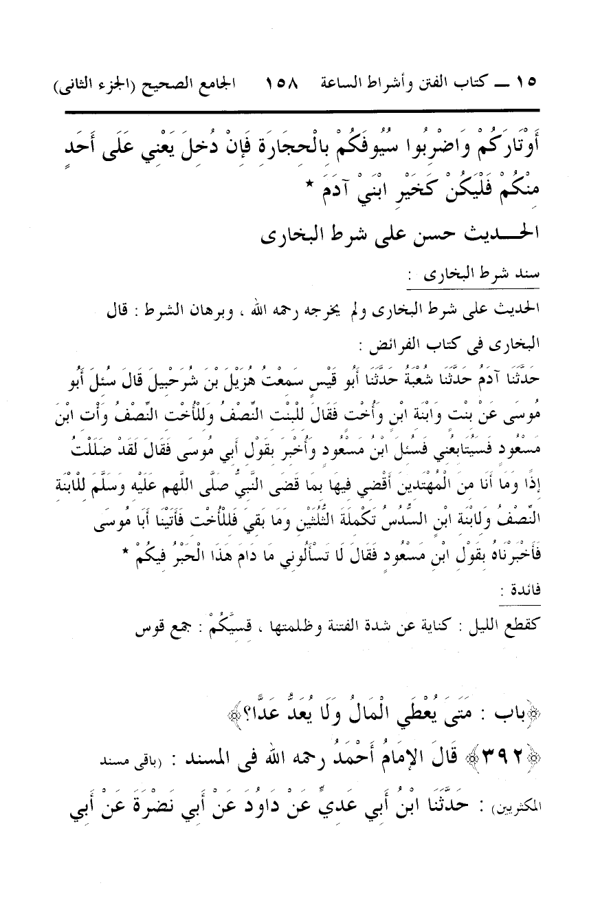 أَوْتَارَكُمْ وَاضْرِبُوا سُيُوفَكُمْ بِالْحِجَارَةِ فَإِنْ دُخِلَ يَعْنِي عَلَى أَحَدٍ مِنْكُمْ فَلْيَكُنْ كَخَيْرِ ابْنَيْ آدَمَ *