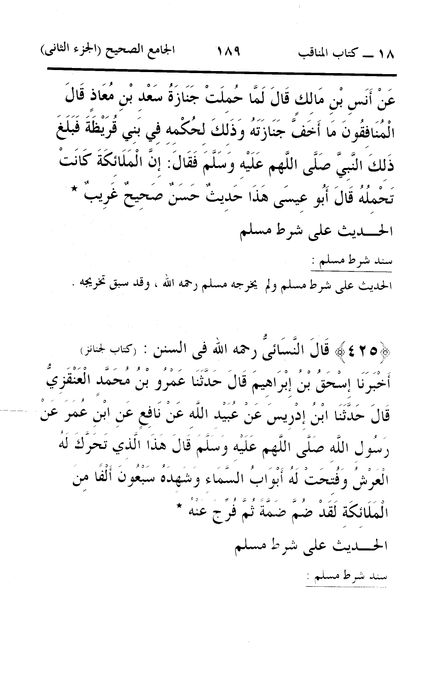 425 - قَالَ النَّسَائىُّ رحمه الله فى السنن: (كتاب لجنائز)