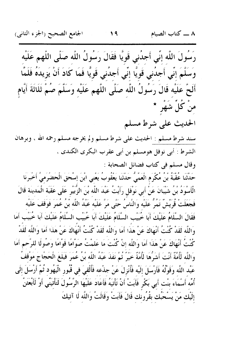 أَلَحَّ عَلَيْهِ قَالَ رَسُولُ اللَّهِ صَلَّى اللَّهم عَلَيْهِ وَسَلَّمَ صُمْ ثَلَاثَةَ أَيَّامٍ مِنْ كُلِّ شَهْرٍ *
