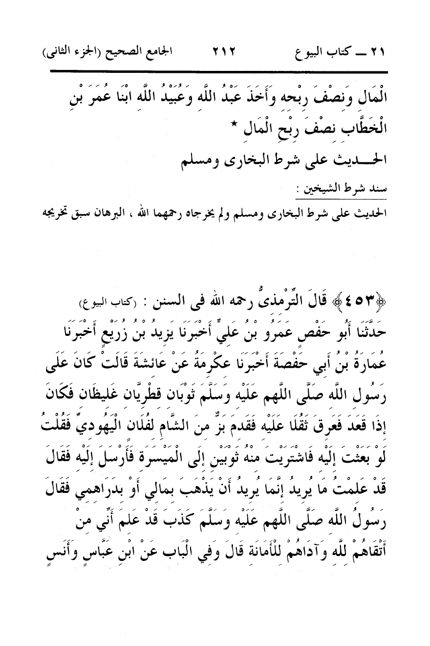 453 - قَالَ التِّرْمِذِىُّ رحمه الله فى السنن: (كتاب البيوع)