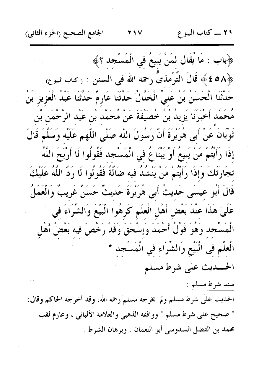 458 - قَالَ التِّرْمِذِىُّ رحمه الله فى السنن: (كتاب البيوع)