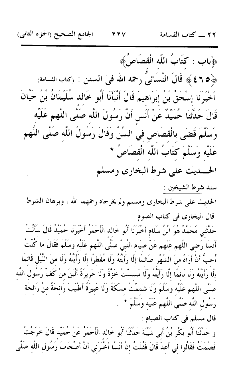 465 - قَالَ النَّسَائىُّ رحمه الله فى السنن: (كتاب القسامة)