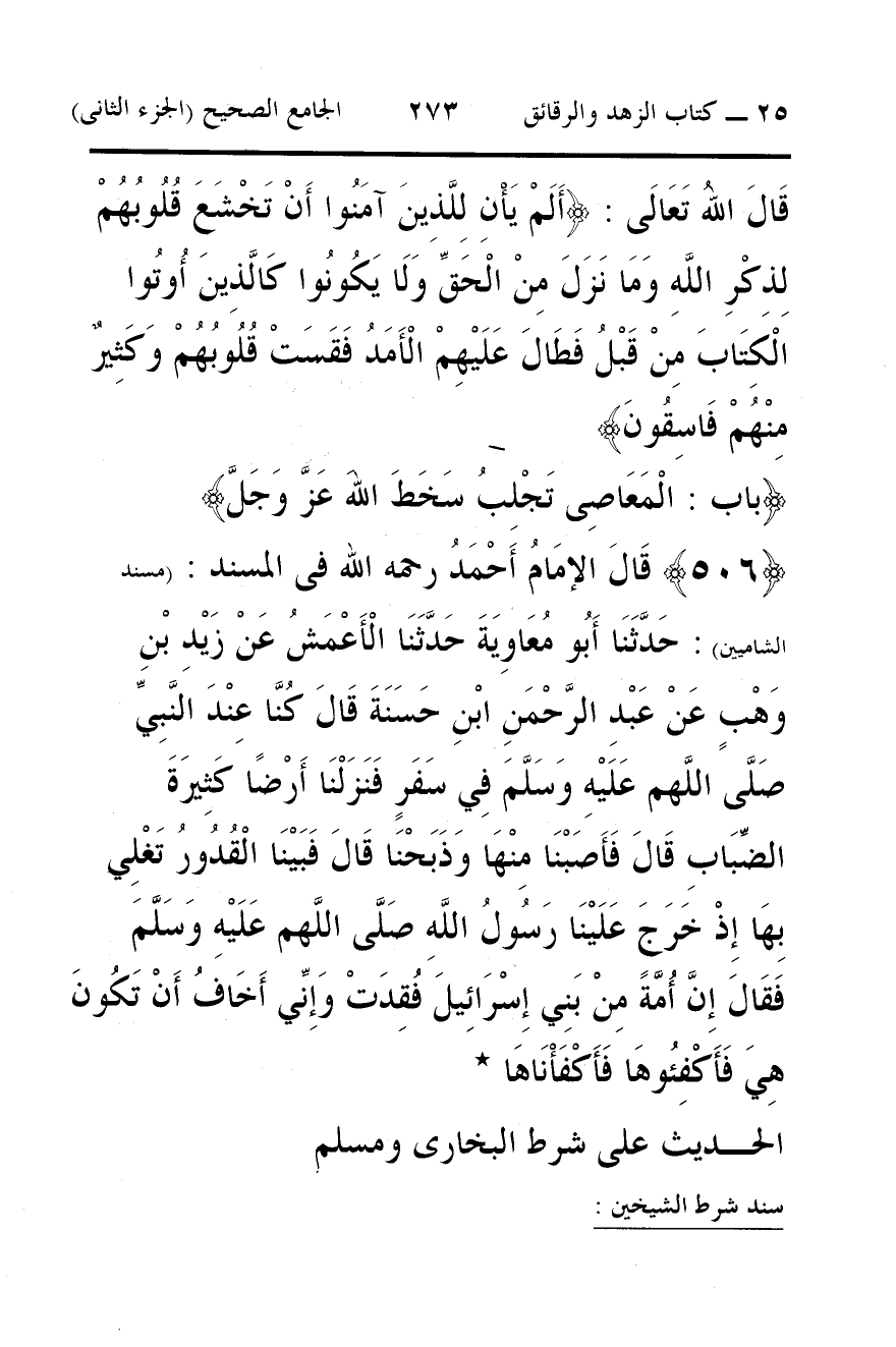 قَالَ اللهُ تَعَالَى: {أَلَمْ يَانِ لِلَّذِينَ آمَنُوا أَنْ تَخْشَعَ قُلُوبُهُمْ لِذِكْرِ اللَّهِ وَمَا نَزَلَ مِنْ الْحَقِّ وَلَا يَكُونُوا كَالَّذِينَ أُوتُوا الْكِتَابَ مِنْ قَبْلُ فَطَالَ عَلَيْهِمْ الْأَمَدُ فَقَسَتْ قُلُوبُهُمْ وَكَثِيرٌ مِنْهُمْ فَاسِقُونَ}