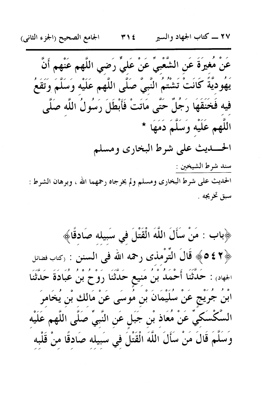 542 - قَالَ التِّرْمِذِى رحمه الله فى السنن: (كتاب فضائل الجهاد): حَدَّثَنَا أَحْمَدُ بْنُ مَنِيعٍ حَدَّثَنَا رَوْحُ بْنُ عُبَادَةَ حَدَّثَنَا ابْنُ جُرَيْجٍ عَنْ سُلَيْمَانَ بْنِ مُوسَى عَنْ مَالِكِ بْنِ يُخَامِرَ السَّكْسَكِيِّ عَنْ مُعَاذِ بْنِ جَبَلٍ عَنِ النَّبِيِّ صَلَّى اللَّهم عَلَيْهِ وَسَلَّمَ قَالَ مَنْ سَأَلَ اللَّهَ الْقَتْلَ فِي سَبِيلِهِ صَادِقًا مِنْ قَلْبِهِ
