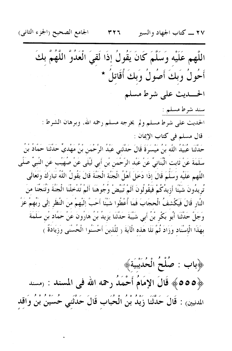 555 - قَالَ الإمَامُ أَحْمَدُ رحمه الله فى المسند: (مسند المدنيين): قَالَ حَدَّثَنَا زَيْدُ بْنُ الْحُبَابِ قَالَ حَدَّثَنِي حُسَيْنُ بْنُ وَاقِدٍ
