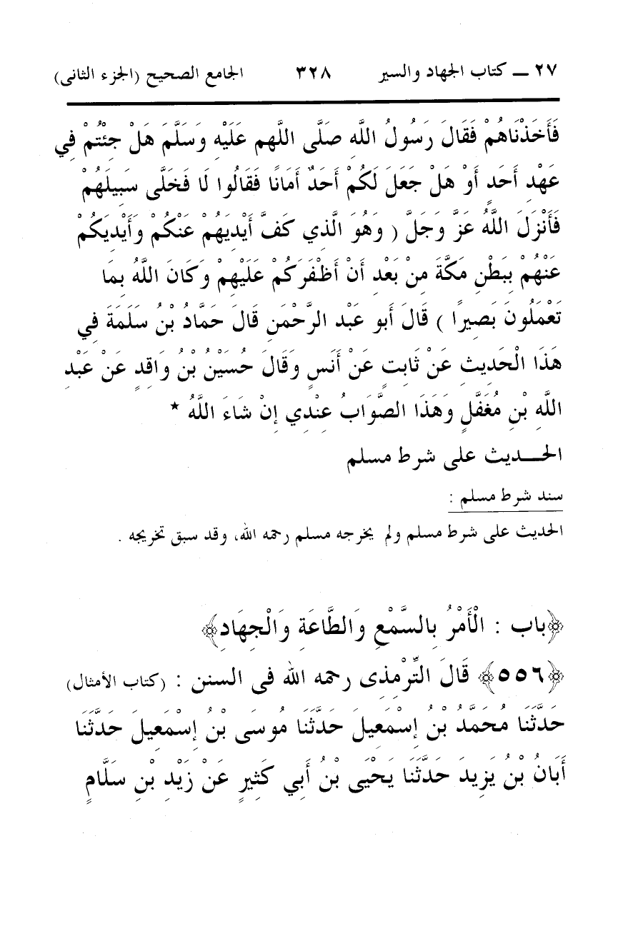 556 - قَالَ التِّرْمِذِى رحمه الله فى السنن: (كتاب الأمثال) حَدَّثَنَا مُحَمَّدُ بْنُ إِسْمَعِيلَ حَدَّثَنَا مُوسَى بْنُ إِسْمَعِيلَ حَدَّثَنَا أَبَانُ بْنُ يَزِيدَ حَدَّثَنَا يَحْيَى بْنُ أَبِي كَثِيرٍ عَنْ زَيْدِ بْنِ سَلَّامٍ