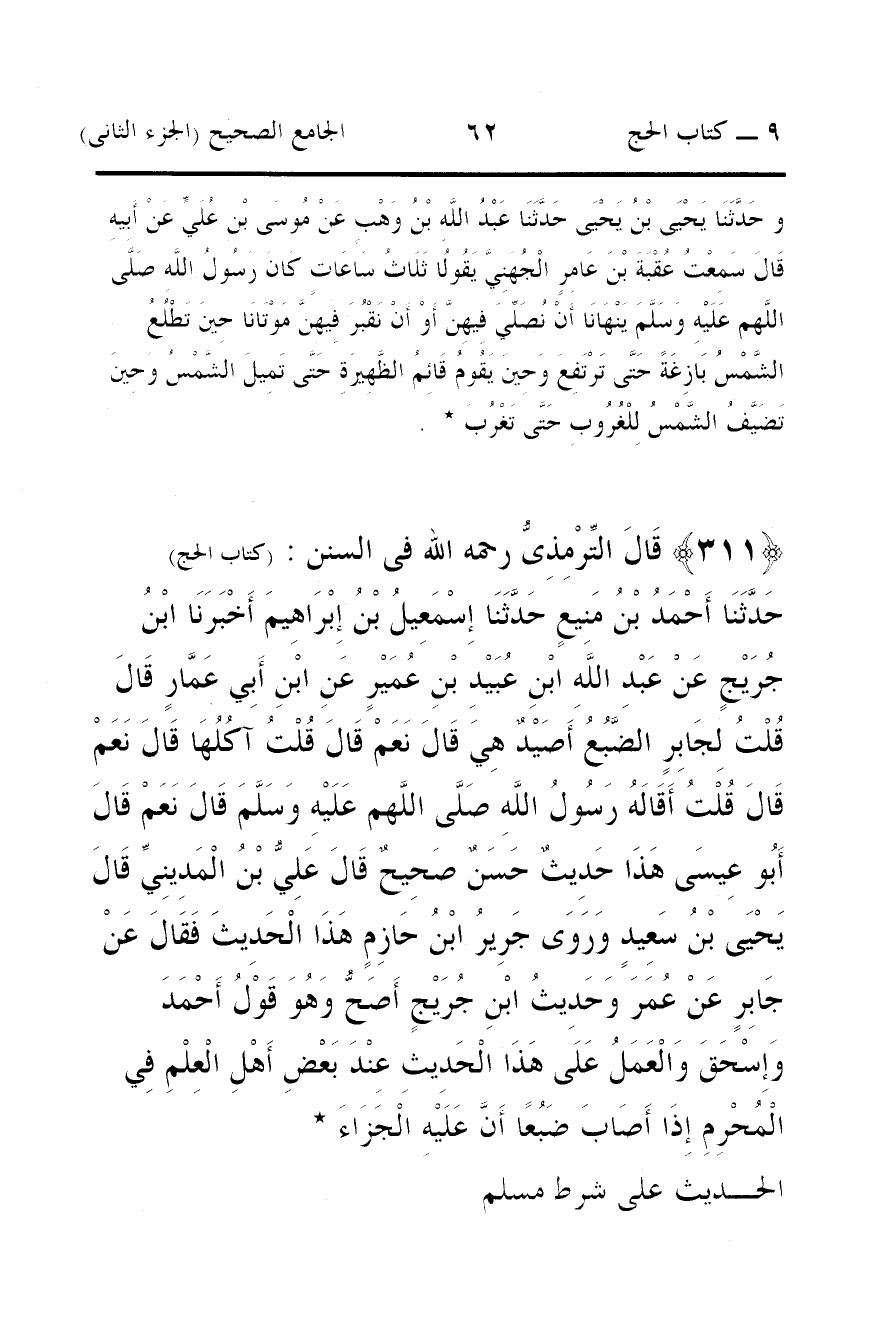 311 - قَالَ التِّرْمِذِىُّ رحمه الله فى السنن: (كتاب الحج)